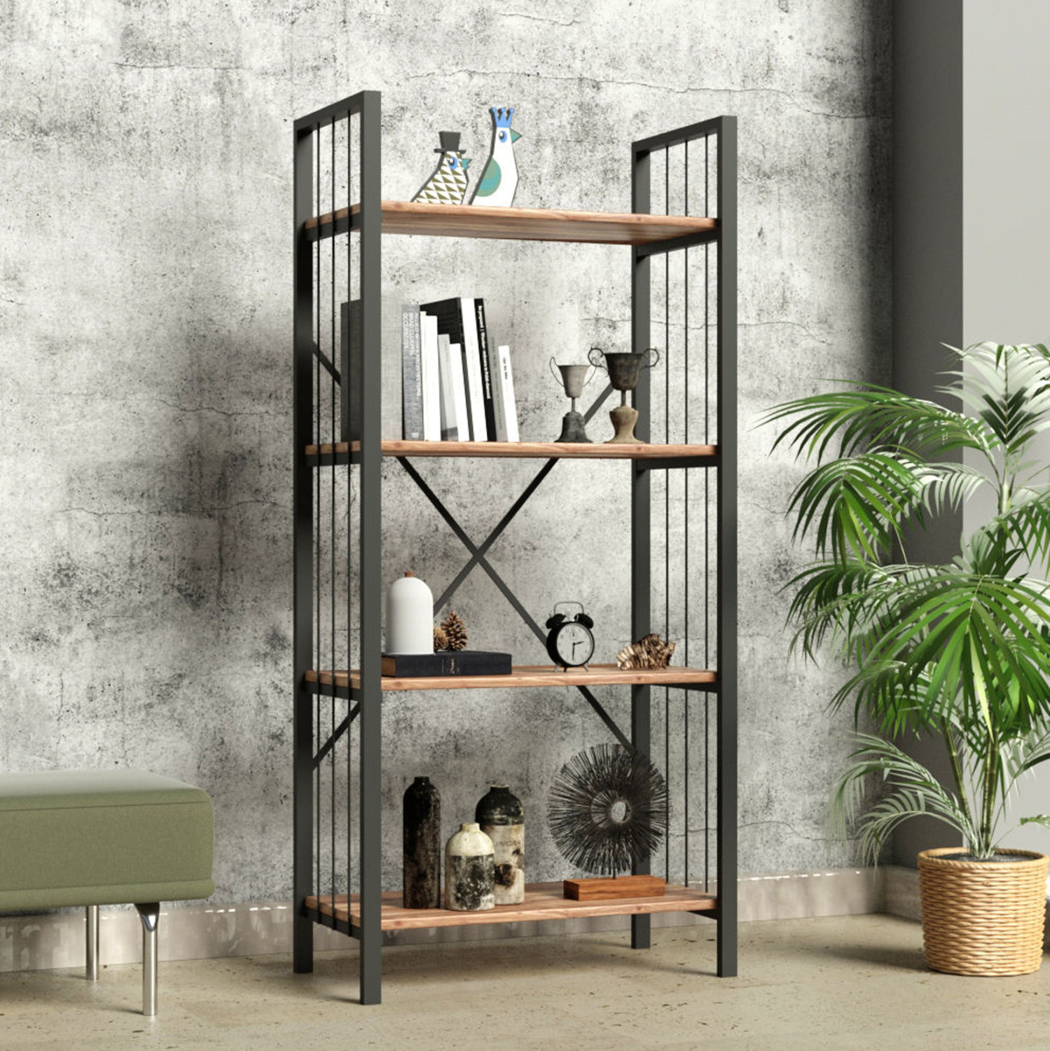 Η βιβλιοθήκη INDUS είναι μια μοντέρνα πρόταση για το γραφείο σας ή οπουδήποτε αλλού θέλετε να τοποθετήσετε μια βιβλιοθήκη. Διαθέτει 4 ανοιχτά ράφια τοποθέτησης από μελαμίνη, τα οποία στηρίζονται σε έναν μεταλλικό σκελετό. Οι διαστάσεις της την καθιστούν βολική για πολλούς χώρους, ενώ το χρώμα της είναι καρυδί με γκρι μεταλλικό σκελετό. Ο μοναδικός και μοντέρνος σχεδιασμός της μαγνητίζει τα βλέμματα και αναδεικνύει κάθε αντικείμενο που τοποθετείται πάνω της, ενώ ταυτόχρονα σας επιτρέπει να διατηρείτε τον χώρο σας σε τάξη.
