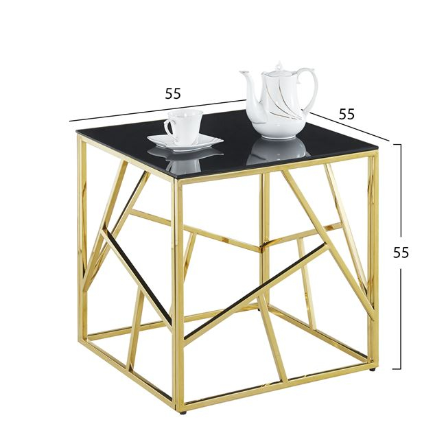 ΒΟΗΘΗΤΙΚΟ ΤΡΑΠΕΖΑΚΙ JANA ΜΕ ΜΑΥΡΟ ΓΥΑΛΙ ΚΑΙ ΕΠΙΧΡΥΣΗ ΒΑΣΗ 55X55Χ55Y EK.HM8619.01