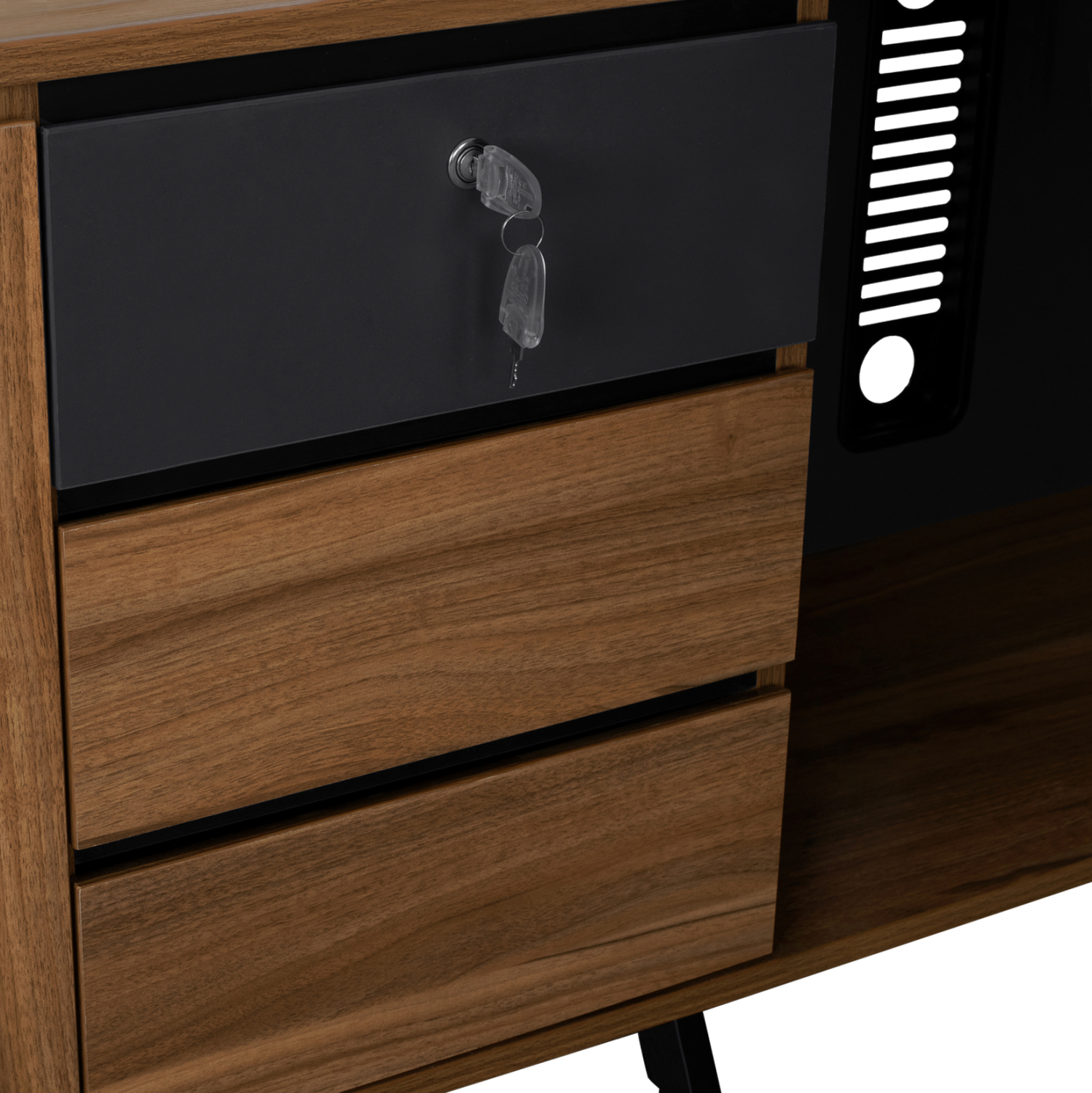 Διαθέτει ένα ντουλάπι, δύο συρτάρια απλά και ένα με κλειδαριά και έναν ανοιχτό αποθηκευτικό χώρο.