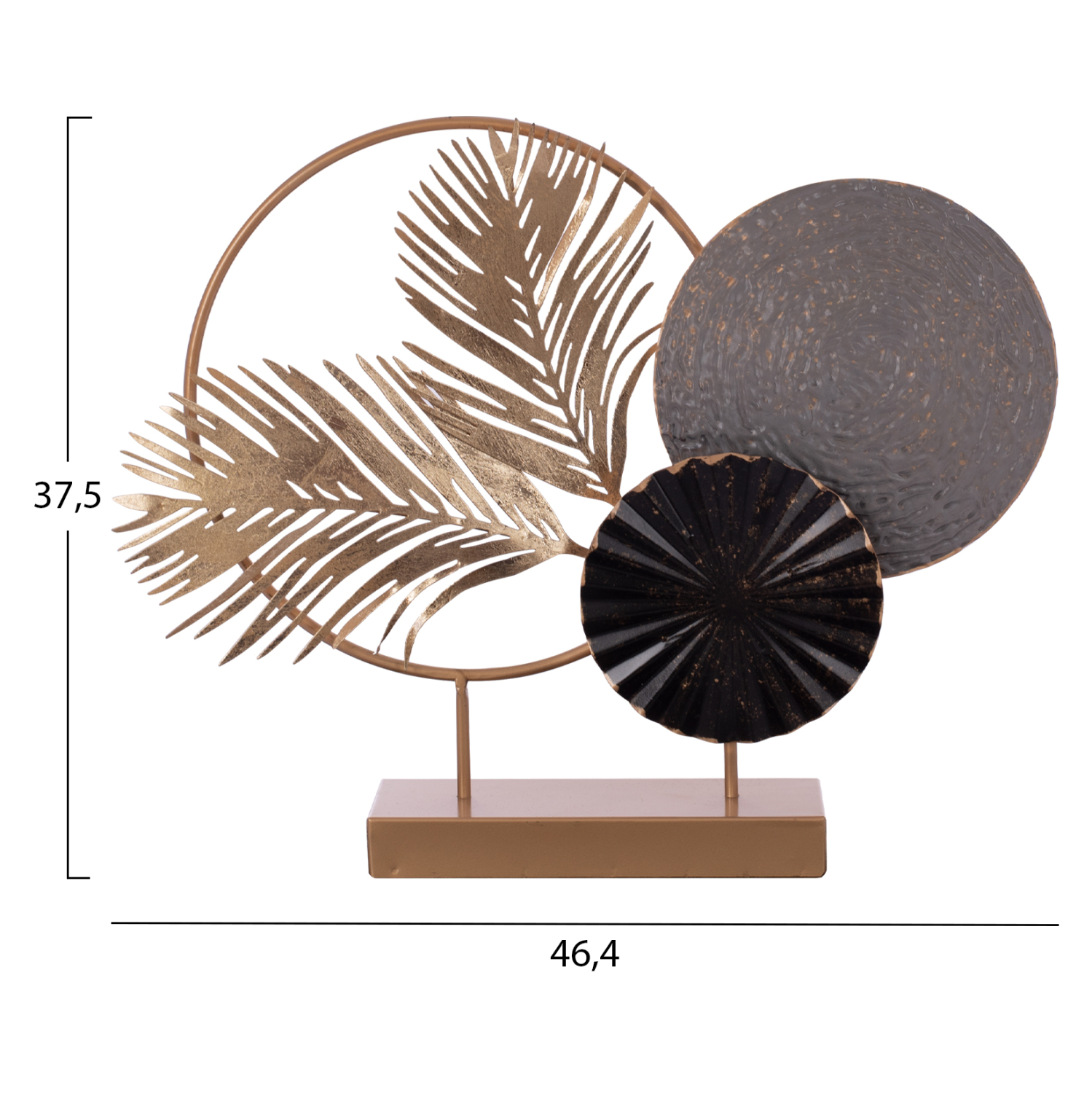Η βάση κι ο ένας κύκλος σε μορφή δακτυλίου, όπως και δύο κλαδάκια δέντρου είναι σε χάλκινο χρώμα, ενώ οι άλλοι δύο κύκλοι είναι συμπαγείς σε γκρι και σκούρο γκρι χρώμα. Αναμφισβήτητα, αποτελεί μια σικάτη και ελκυστική πρόταση για οποιονδήποτε χώρο, που θα εντυπωσιάσει.