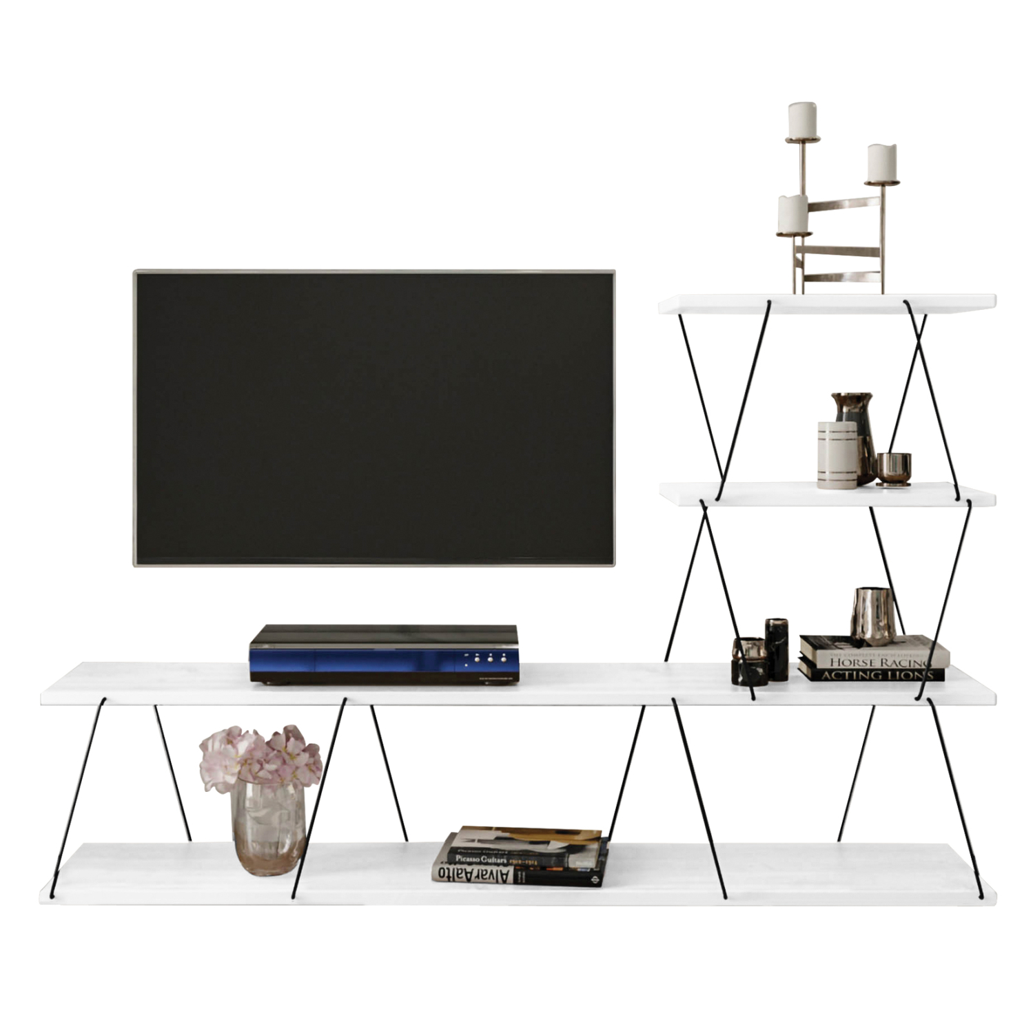 Έπιπλο τηλεόρασης σε λιτό στυλ, κατασκευασμένο από ανθεκτική μελαμίνη πάχους 18 χιλιοστών υψηλής ποιότητας σε λευκή απόχρωση.