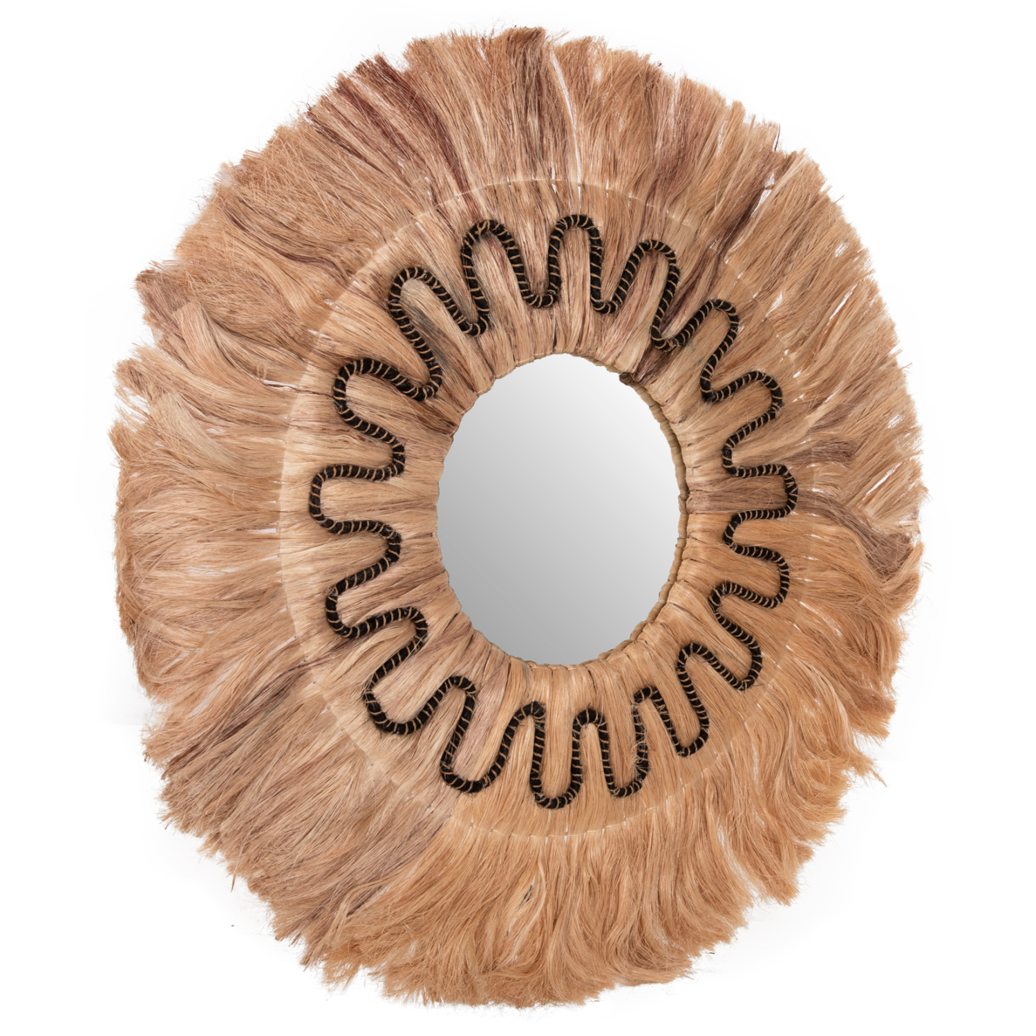 O καθρέπτης ΗΜ7750 είναι πραγματικά ένα εντυπωσιακό κομμάτι στην διακόσμηση του χώρου σας! Το design του είναι όμορφο και λιτό με πλαίσιο από ίνες κάνναβης Μανίλας, το οποίο στο κέντρο του «φιλοξενεί» τον καθρέπτη. Οι ίνες είναι στο φυσικό τους χρώμα με μαύρο περίτεχνο δέσιμο γύρω από τον καθρέπτη, και οι διαστάσεις όλης της κατασκευής είναι ιδανικές.
