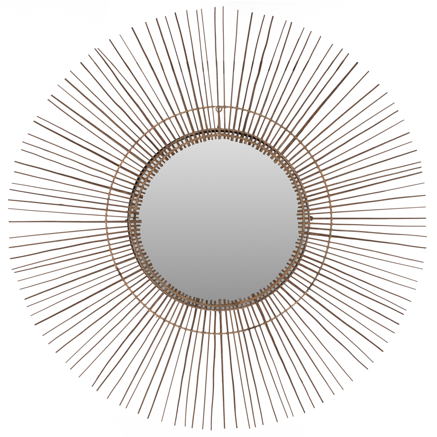 O καθρέπτης ΗΜ7732 είναι πραγματικά ένα εντυπωσιακό κομμάτι στην διακόσμηση του χώρου σας! Το design του είναι μοναδικό με την συμμετρική κυκλική διάταξη των sticks από κοκοφοίνικα, τα οποία στο κέντρο τους «φιλοξενούν» τον καθρέπτη. Τα ξύλα είναι στο φυσικό τους χρώμα και οι διαστάσεις όλης της κατασκευής είναι ικανοποιητικές.