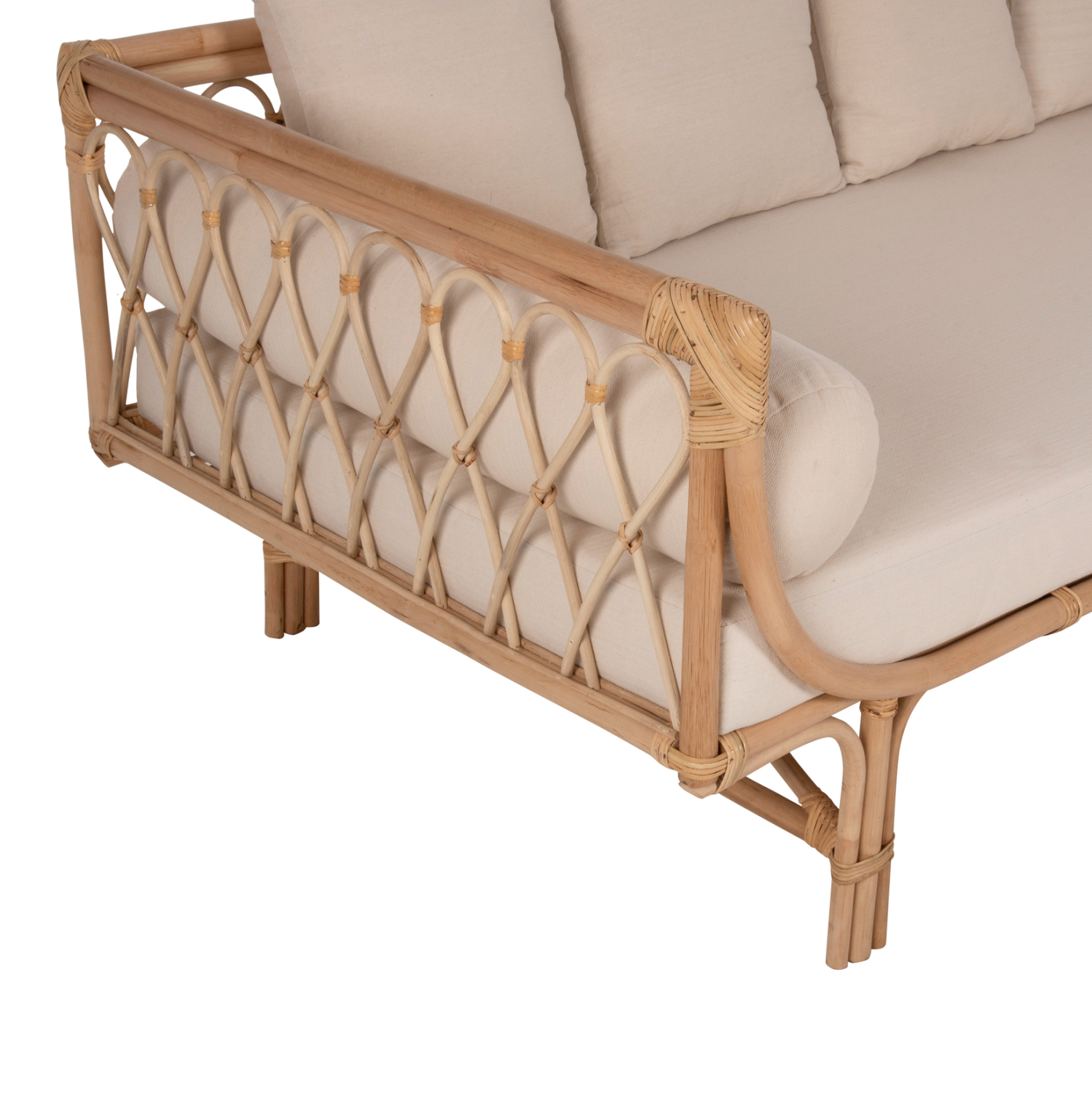 Ο καναπές είναι κατασκευασμένος από φυσικό Rattan. Το Rattan είναι το καλύτερο και το πιο ευρέως χρησιμοποιούμενο φυσικό υλικό για διάφορες κατασκευές. Το Rattan που καλλιεργείται στην Ν.Α. Ασία είναι το ποιοτικότερο και ανθεκτικότερο υλικό από παρόμοια που καλλιεργούνται σε άλλες περιοχές. Με περισσότερα από 600 διαφορετικά είδη, το RATTAN μπορεί να διακριθεί ως ένα ισχυρό ινώδες φυτό που μοιάζει με το μπαμπού και χρησιμοποιείται για ευρέως επειδή είναι ελαφρύ, ανθεκτικό, εύκαμπτο και ελκυστικό.