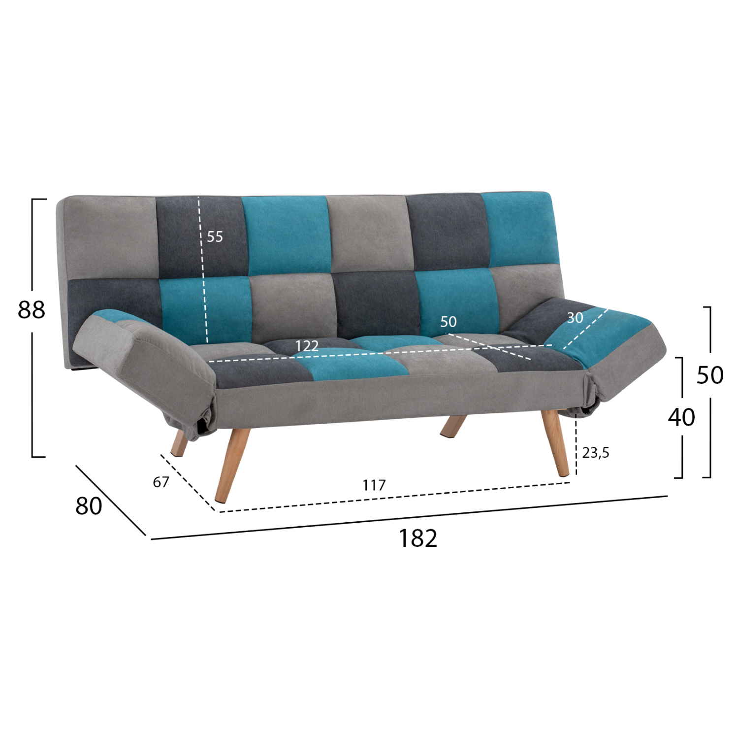 Πτυσσόμενος καναπές-κρεβάτι κατάλληλος για το καθιστικό ή το δωμάτιό σας,η πλάτη του, έχει την δυνατότητα να πέφτει πίσω και να μετατρέπεται εύκολα σε ένα άνετο κρεβάτι ή να παραμένει σε ανάκλιση, ενώ τα μπράτσα του είναι αναδιπλούμενα.