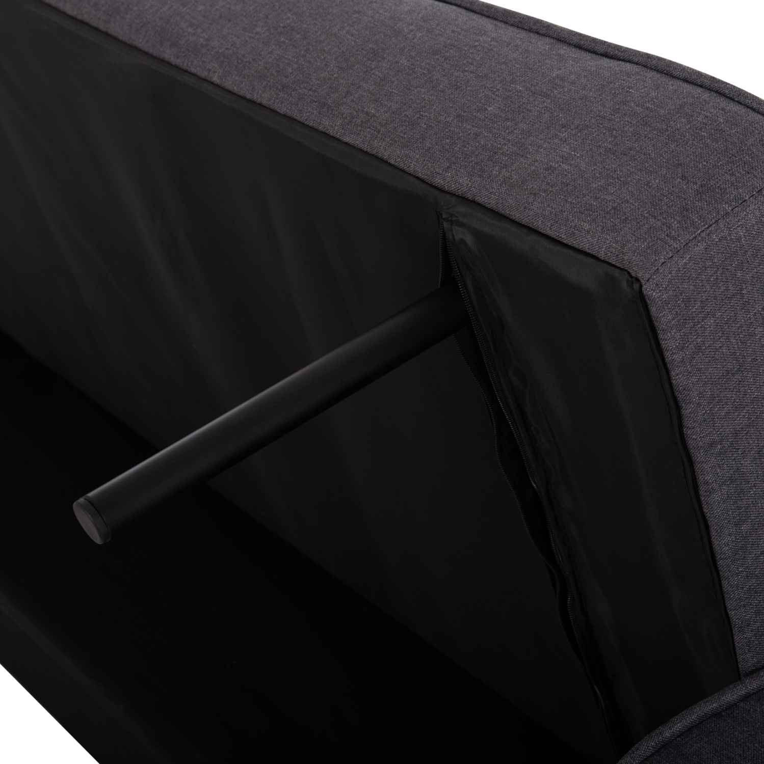 Καναπές κρεβάτι, επενδεδυμένος με ύφασμα σε γκρι απόχρωση.