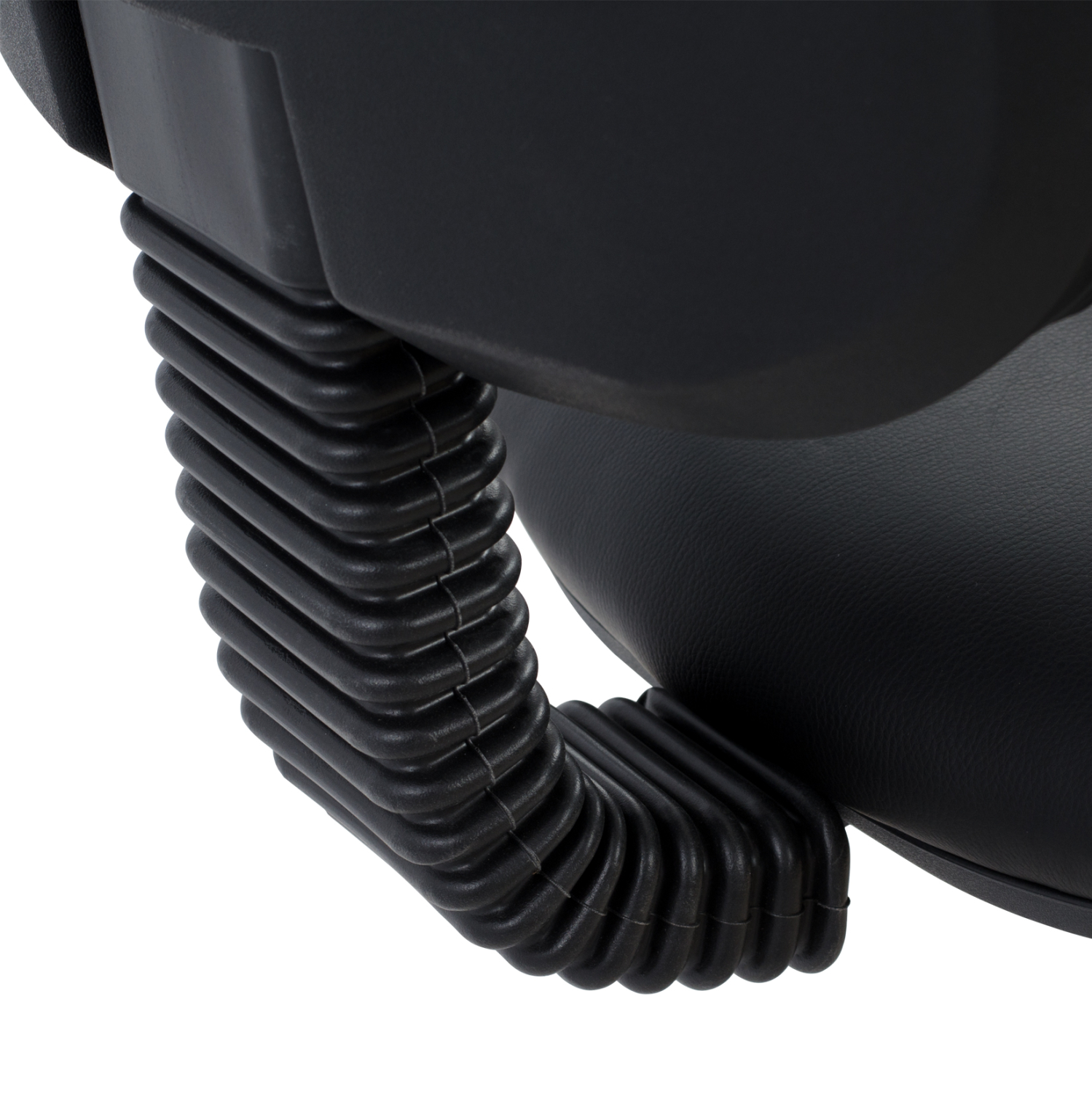 Τροχήλατη καρέκλα με μπράτσα, περιμετρικό υποπόδιο και ρυθμιζόμενη πλάτη και κάθισμα.