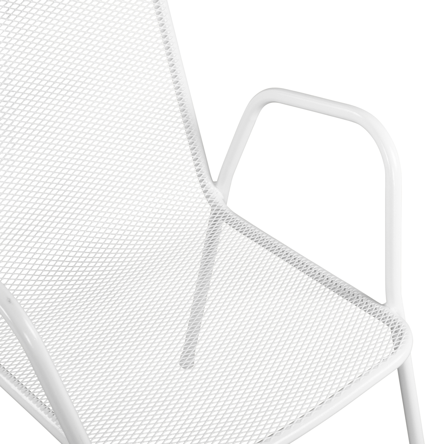Πολυθρόνα μεταλλική για εξωτερικό χώρο. Η βάση και το κάθισμα της καρέκλας είναι από μεταλλικό πλέγμα.