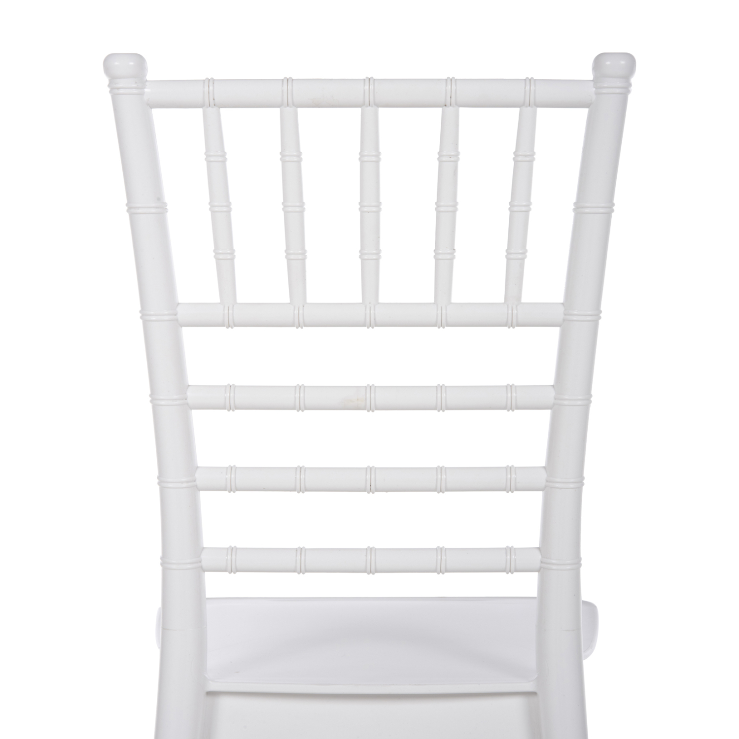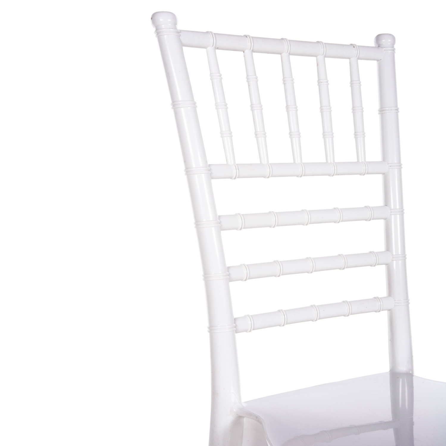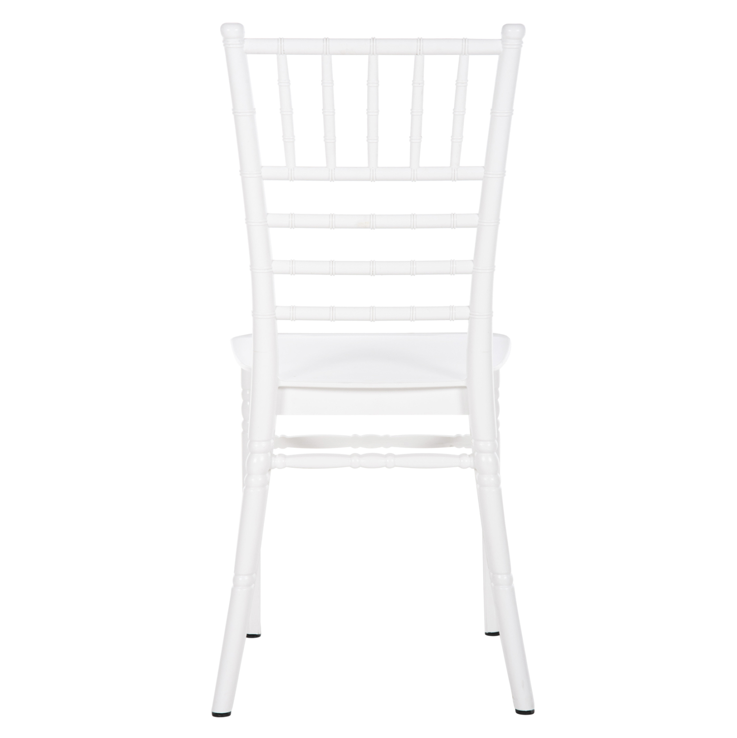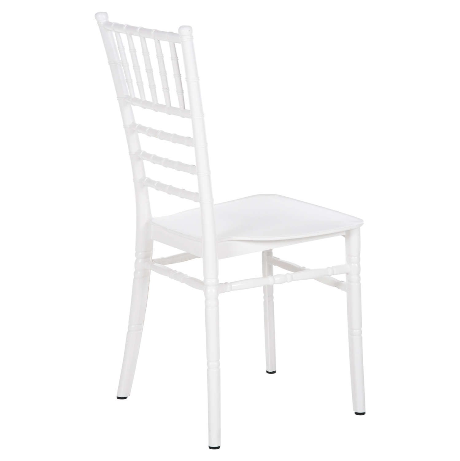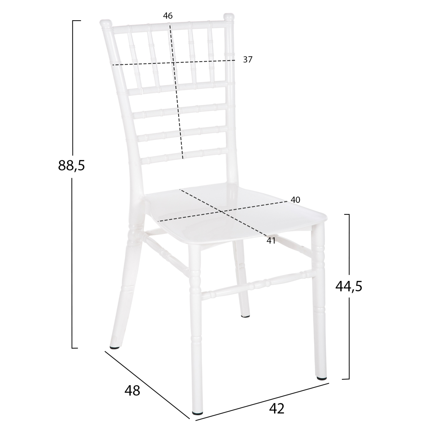 Καρέκλα TIFFANY σε λευκό χρώμα. Ιδανική πρόταση για χρήση σε επαγγελματικούς χώρους (χώροι δεξιώσεων, εταιρείες catering, κλπ.). Η καρέκλα διαθέτει λεπτομέρειες τόσο στις οριζόντιες όσο και στις κάθετες δοκούς της πλάτης, αλλά και στα πόδια. Φυσικά, μια τέτοια καρέκλα είναι και ΣΤΟΙΒΑΖΟΜΕΝΗ πράγμα που την κάνει ιδιαιτέρως πρακτική.