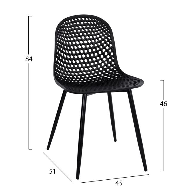 Η κατασκευή της καρέκλα MILANA είναι από πολυπροπιλένιο και μέταλλο σε μαύρη απόχρωση.