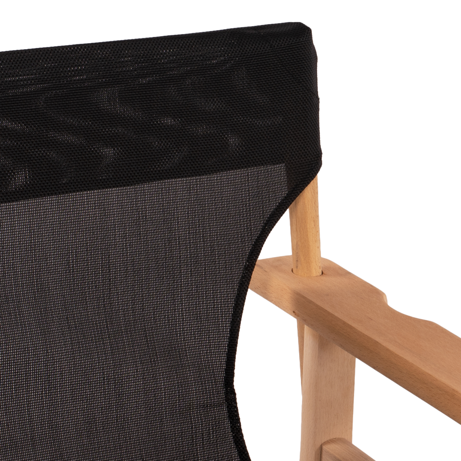 Κατασκευασμένη από ενισχυμένο σκελετό 100% μασίφ ξύλο φουρνιστής οξιάς σε φυσική απόχρωση, με ύφασμα διάτρητο PVC σε μαύρο χρώμα.