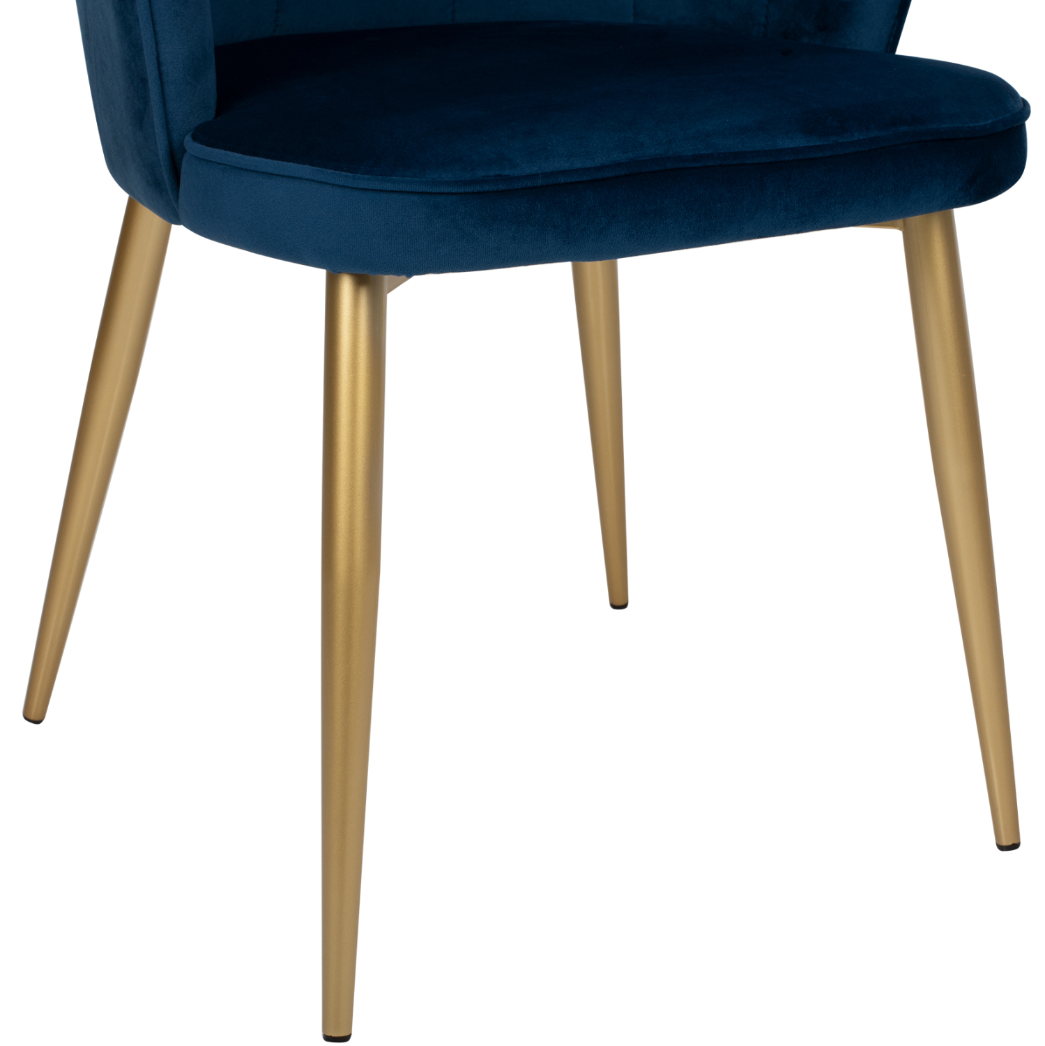 Η καρέκλα AVIE είναι ξεχωριστή! Μοντέρνα, άνετη και σταθερή! Το κυρίαρχο χρώμα είναι το έντονο ΜΠΛΕ, ενώ τα 4 πόδια είναι σε χρυσό χρώμα, δημιουργώντας μια χτυπητή διχρωμία. Το ημικυκλικό design της είναι άνετο και δίνει την όψη ανοιχτού όστρακου, ενώ δίνει την αίσθηση ότι αγκαλιάζει το σώμα. Πρόκειται για μια πρόταση λιτή που θα ταιριάξει σχεδόν παντού!