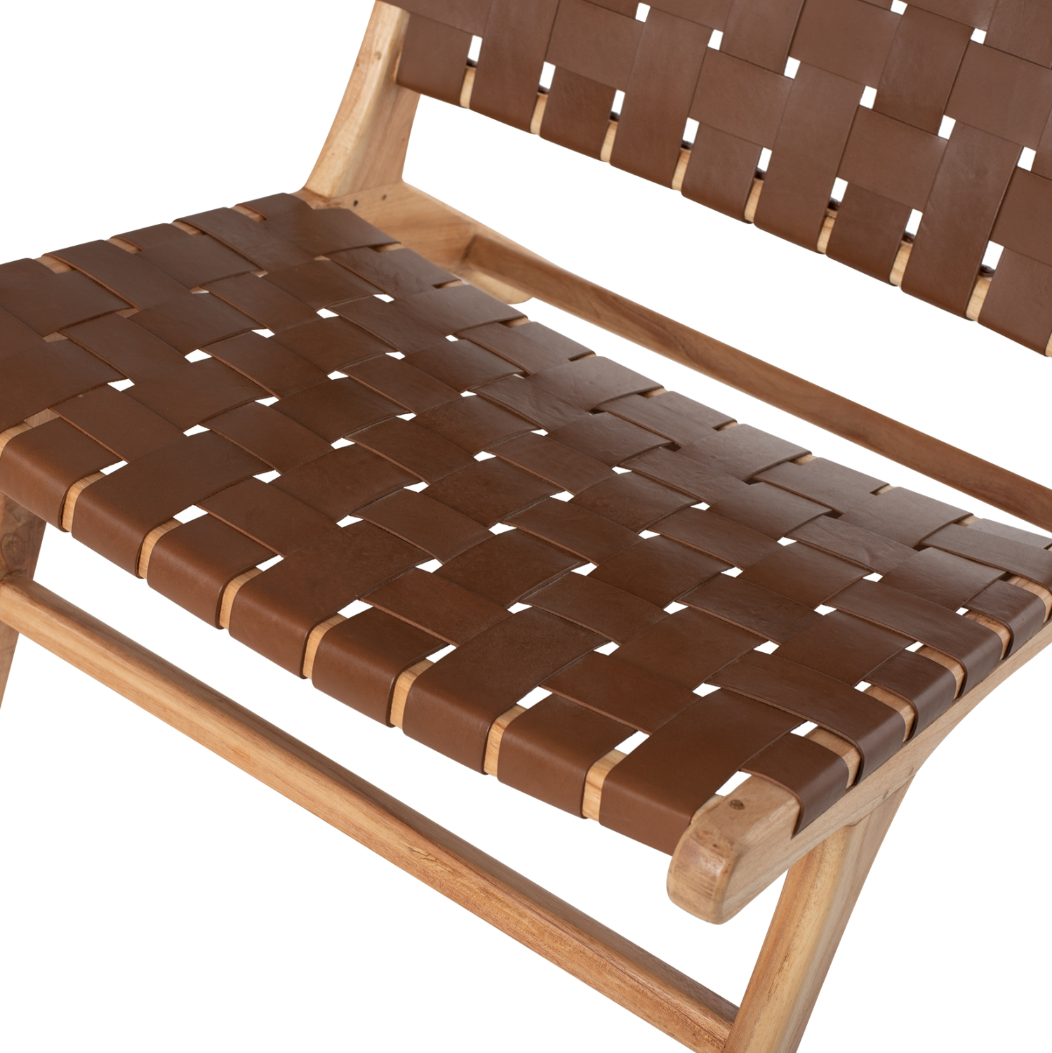 Η καρέκλα FELIPE είναι μια κοντή και φαρδιά καρέκλα χωρίς μπράτσα απαράμιλλης ομορφιάς. Ο πανέμορφος σκελετός της είναι από ποιοτικό ξύλο, ενώ τόσο η μεσαίου ύψους πλάτη όσο και το φαρδύ κάθισμα αποτελούνται από τετραγωνισμένα πλεγμένο PU δέρμα άριστης ποιότητας. Οι σχεδιαστικές γραμμές της πολυθρόνας είναι κομψές και με γνώμονα την άνεση του χρήστη, με χαρακτηριστικό παράδειγμα το κοντό κάθισμα με την έντονη κλίση και την πλάτη με την επίσης χαρακτηριστική κλίση προς τα πίσω. Το ξύλο έχει το φυσικό του χρώμα που μπορεί άνετα να συνδυαστεί με διάφορα διακοσμητικά μοτίβα ενώ το PU δέρμα είναι ΚΑΦΕ. Η πολυθρόνα θα αποτελέσει το κέντρο ενδιαφέροντος οπουδήποτε και αν τοποθετηθεί.