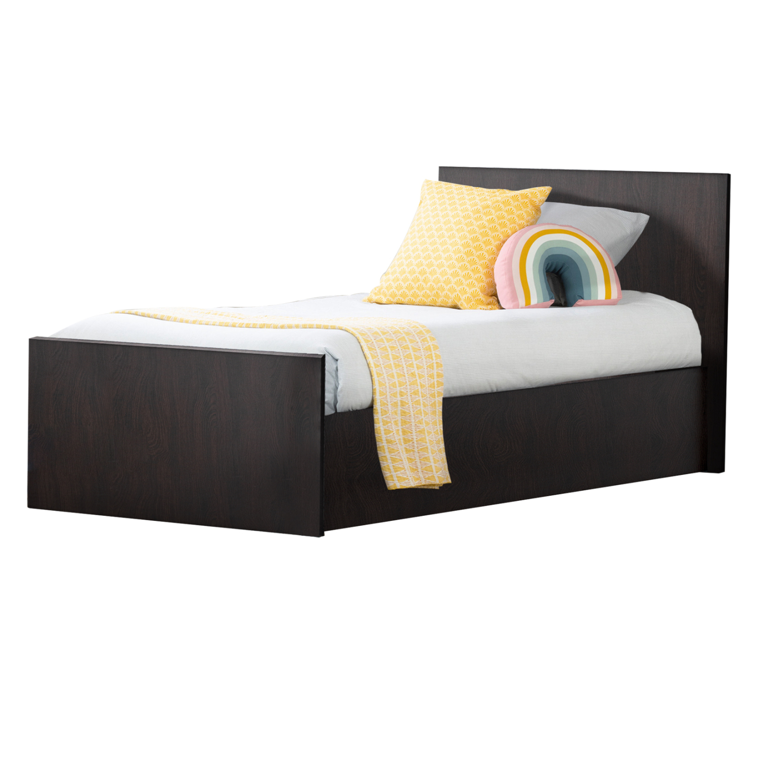 Το κρεβάτι είναι εξολοκλήρου κατασκευασμένο από μελαμίνη. Η μελαμίνη είναι είδος ξύλου σε μορφή μοριοσανίδας. Οι μοριοσανίδες είναι προϊόντα που έχουν τη μορφή πλάκας (panel) και προέρχονται από τη συγκόλληση μέσω πρεσσαρίσματος, μικρών σε διαστάσεις τεμαχιδίων ξύλου (συνήθως ελάτης, οξιάς, ερυθρελάτης, κτλ) με την βοήθεια διάφορων ρητινούχων υγρών. Έπειτα, η μοριοσανίδα επενδύεται, συνήθως με συνθετικά υλικά, όπως φύλλα χαρτιού (μελαμίνες). Ως υλικό είναι πολύ ανθεκτικό και με μεγάλη σκληρότητα. Άρα, πρόκειται για ένα συνθετικό υλικό με πολύ σκληρή επιφάνεια, με αποτέλεσμα να είναι πολύ ανθεκτική στις γρατζουνιές, στην τριβή και τους λεκέδες.