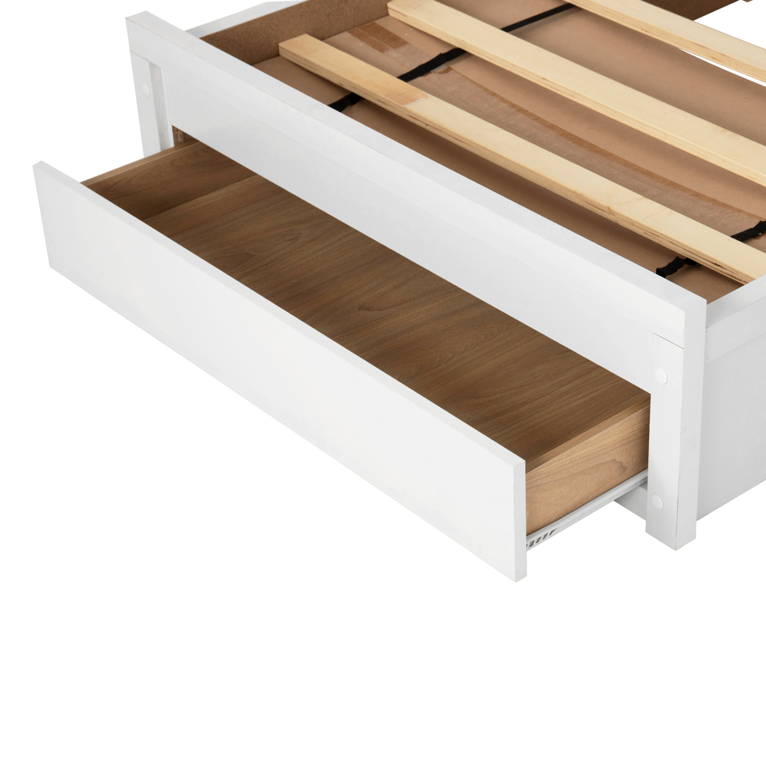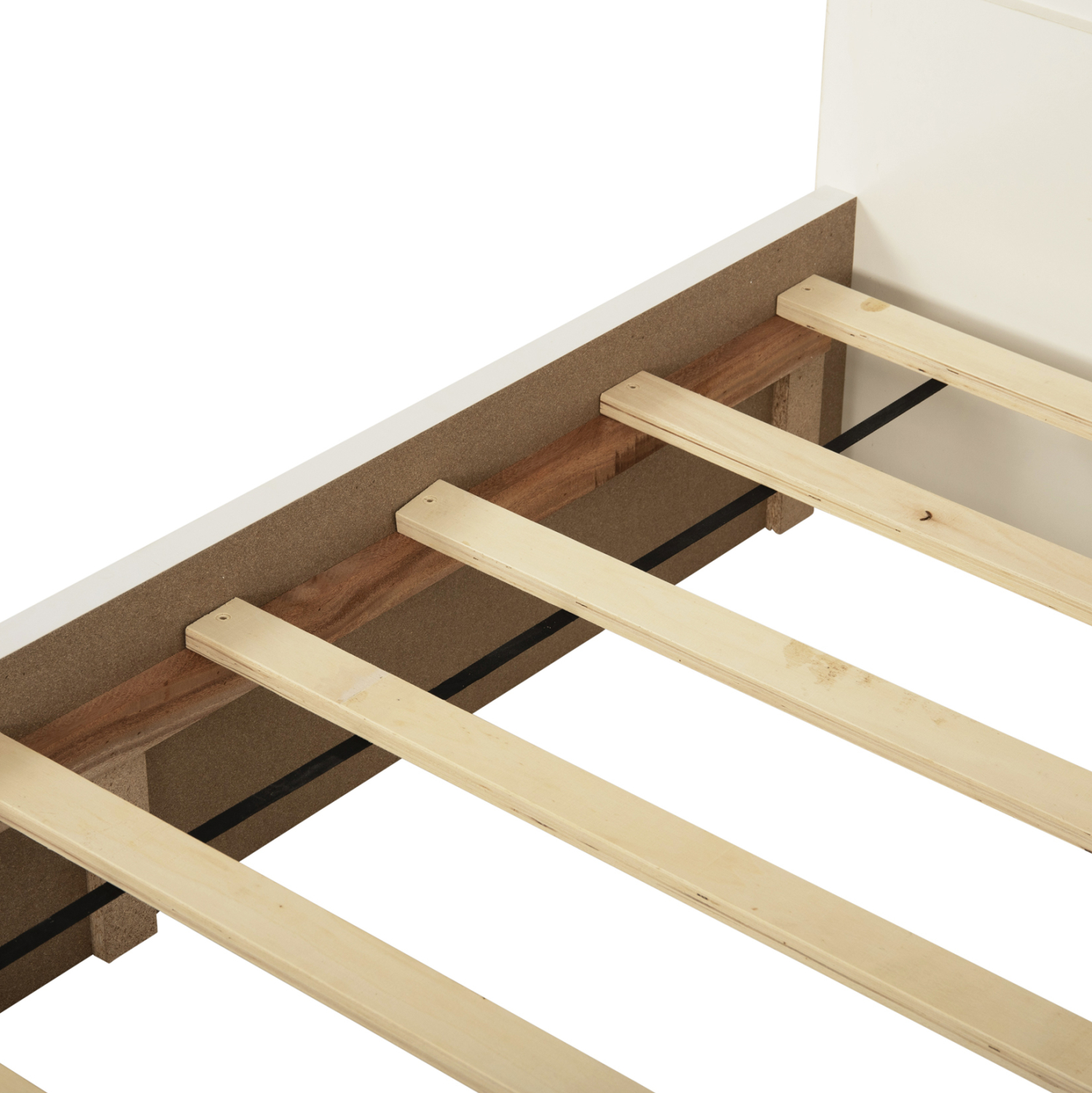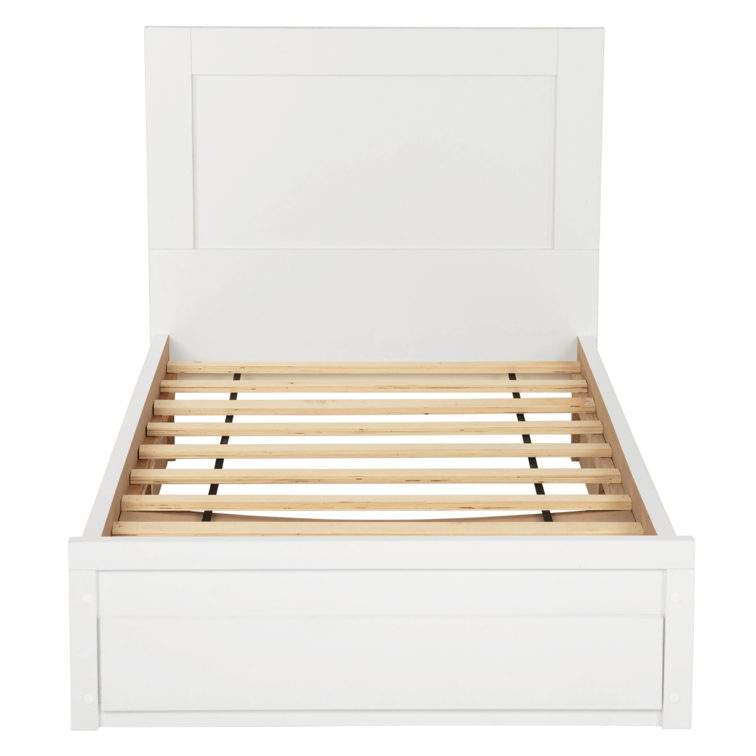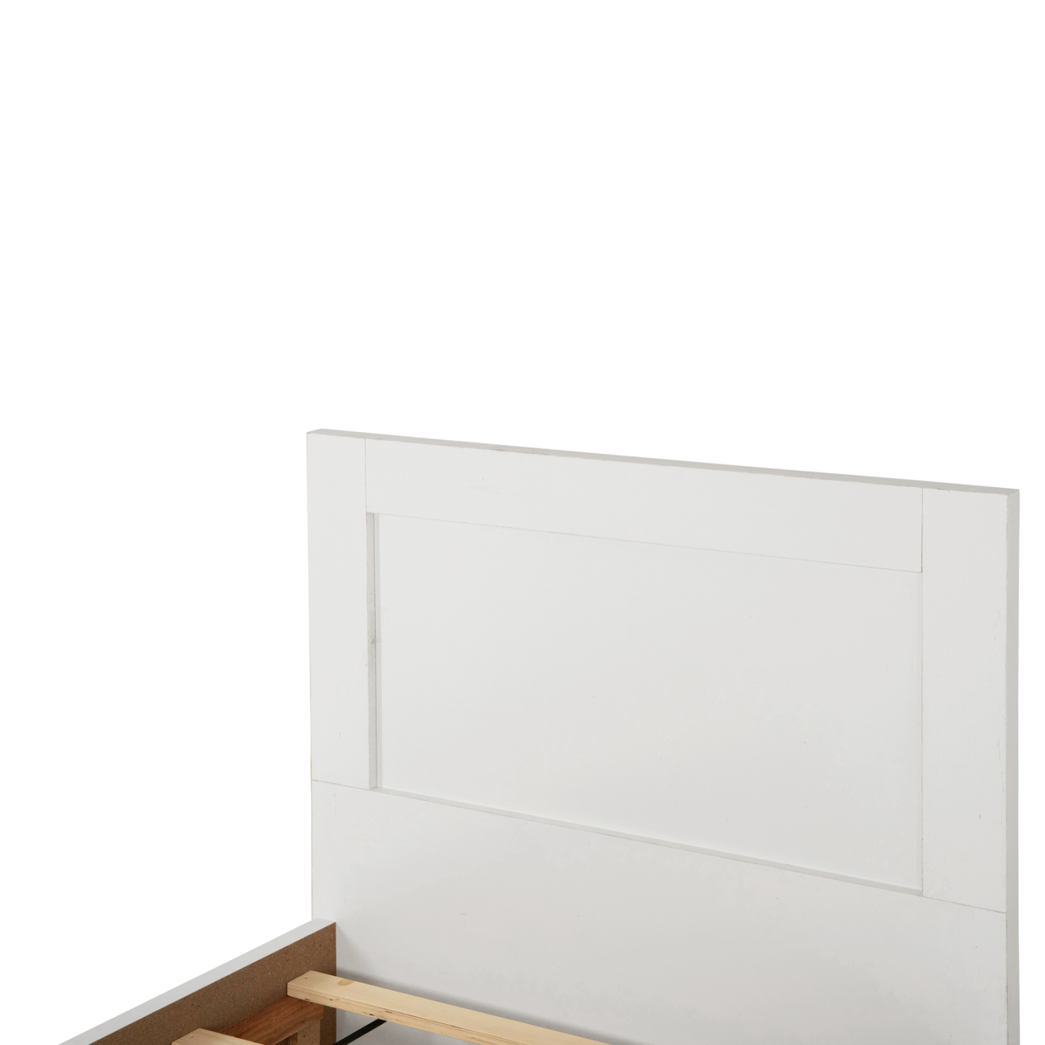 Το κρεβάτι MELANY σε διάσταση για μονό στρώμα 90×190 εκ, είναι μια άριστης ποιότητας, κλασική και ασφαλής επιλογή που θα ταιριάξει σε κάθε υπνοδωμάτιο. Το χαρακτηριστικό του είναι ότι πατάει απευθείας στο δάπεδο και εκμεταλλεύεται τον χώρο κάτω από τις τάβλες του σομιέ με 1 μεγάλο συρτάρι που βγαίνει από την πλευρά του «ποδαρικού» (η επιφάνεια απέναντι από το κεφαλάρι). Όλες οι γωνίες είναι τετραγωνισμένες χωρίς καμία καμπύλη, ενώ το ΛΕΥΚΟ χρώμα είναι ευχάριστο και ουδέτερο, και μπορεί να συνδυαστεί με πληθώρα διακοσμητικών μοτίβων στον χώρο σας.