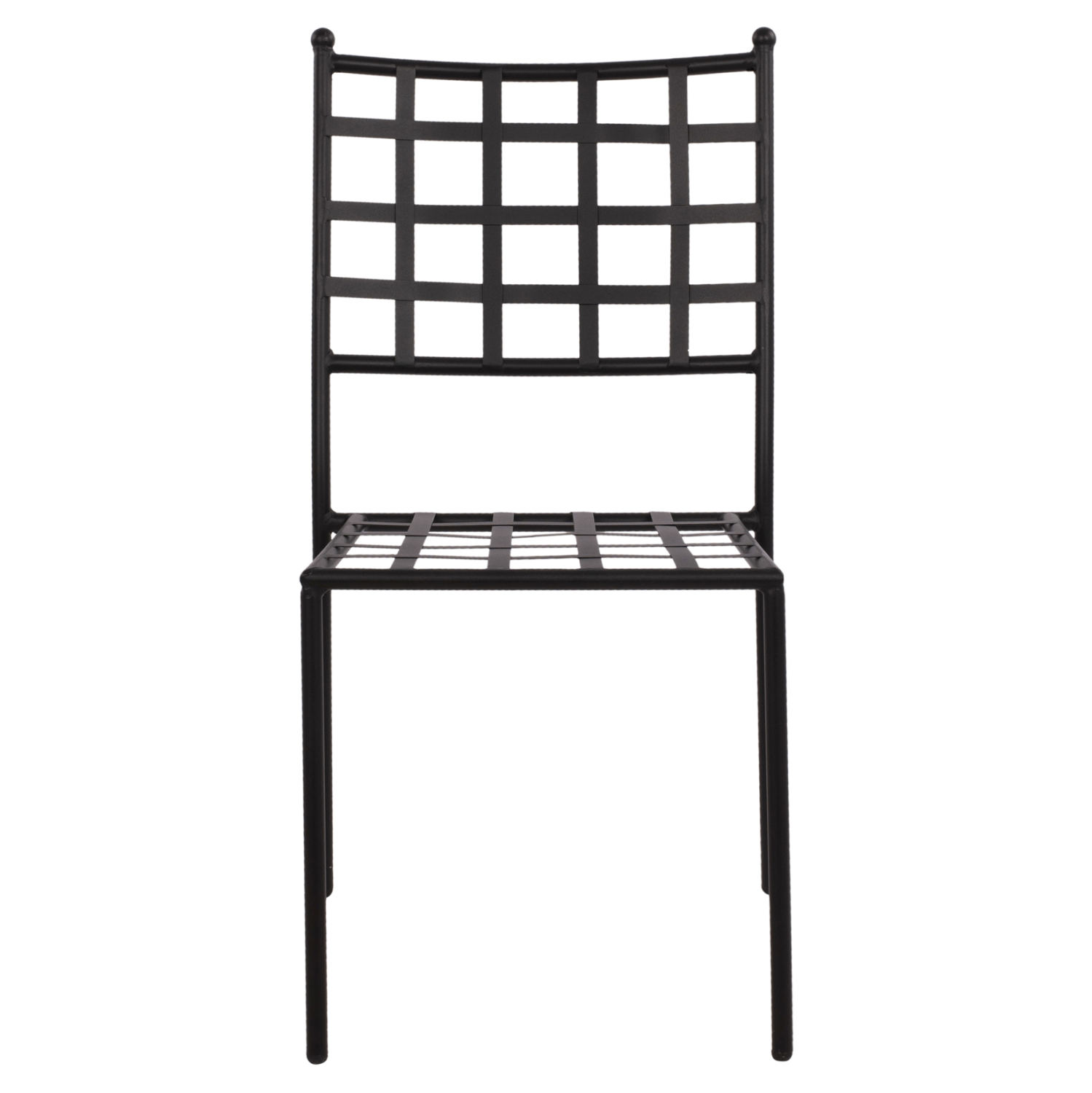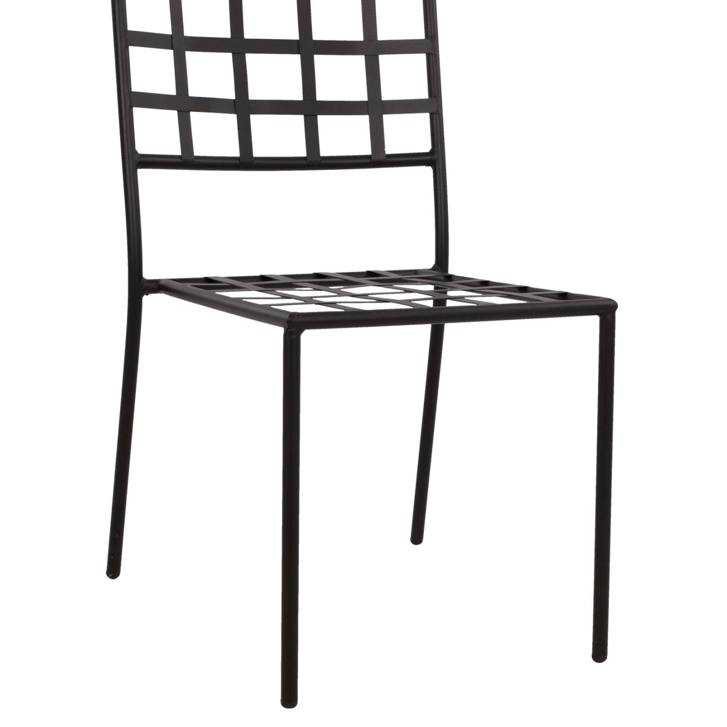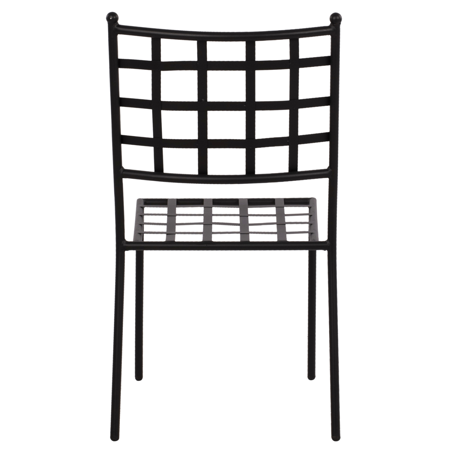 Στιβαρή και μεγάλης αντοχής μεταλλική καρέκλα σε μαύρη απόχρωση, ιδανική για εξωτερικούς χώρους.