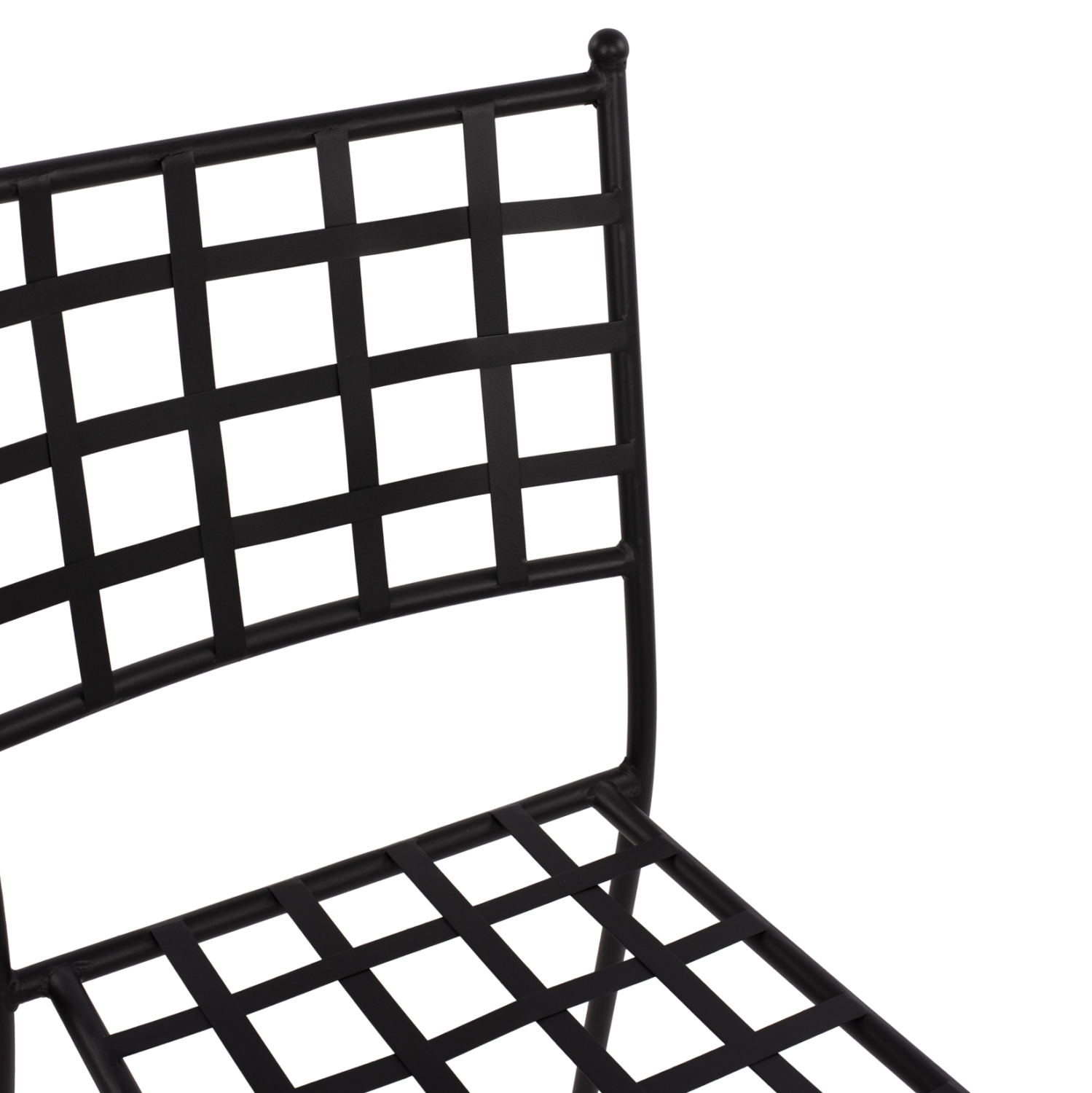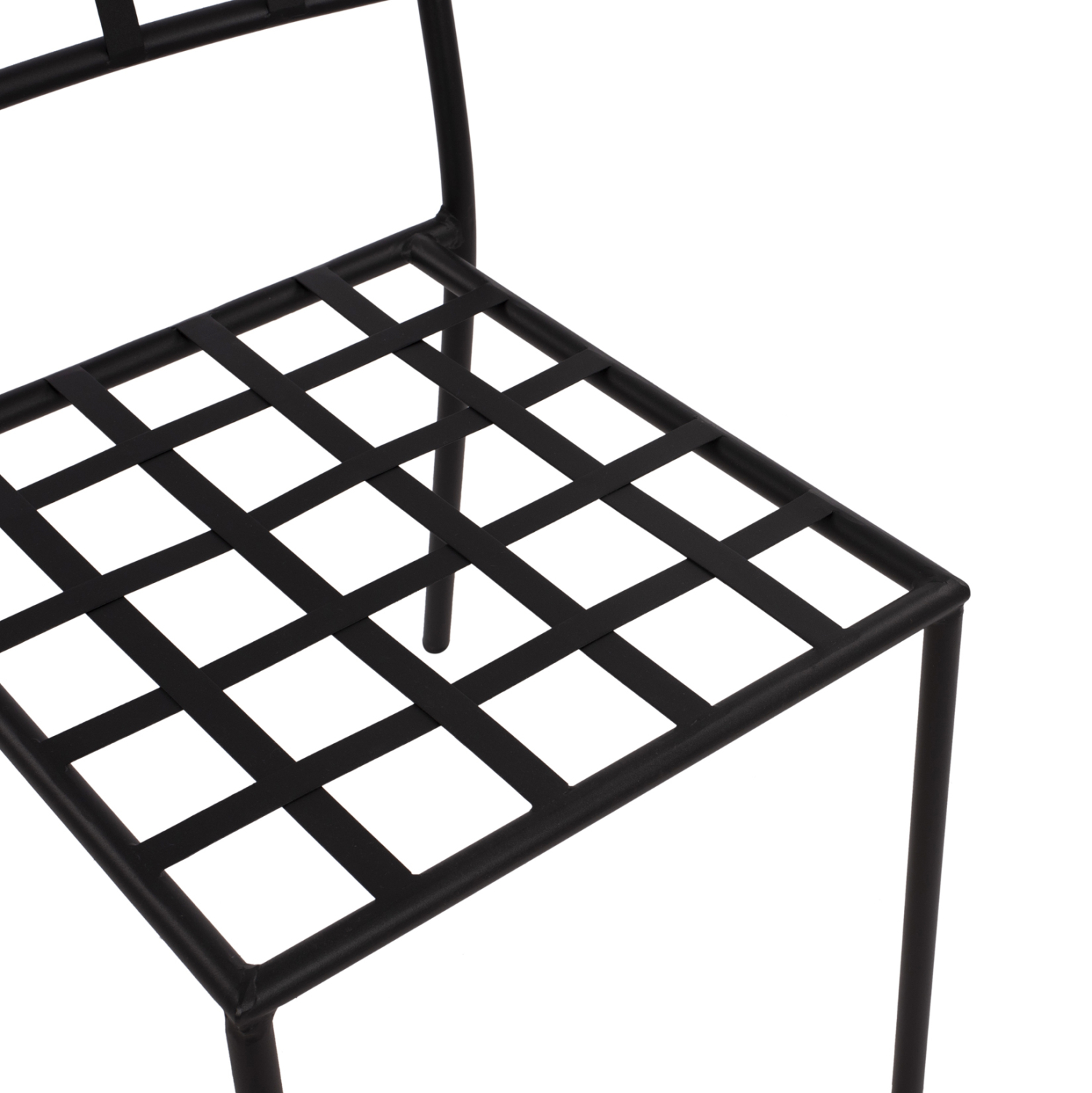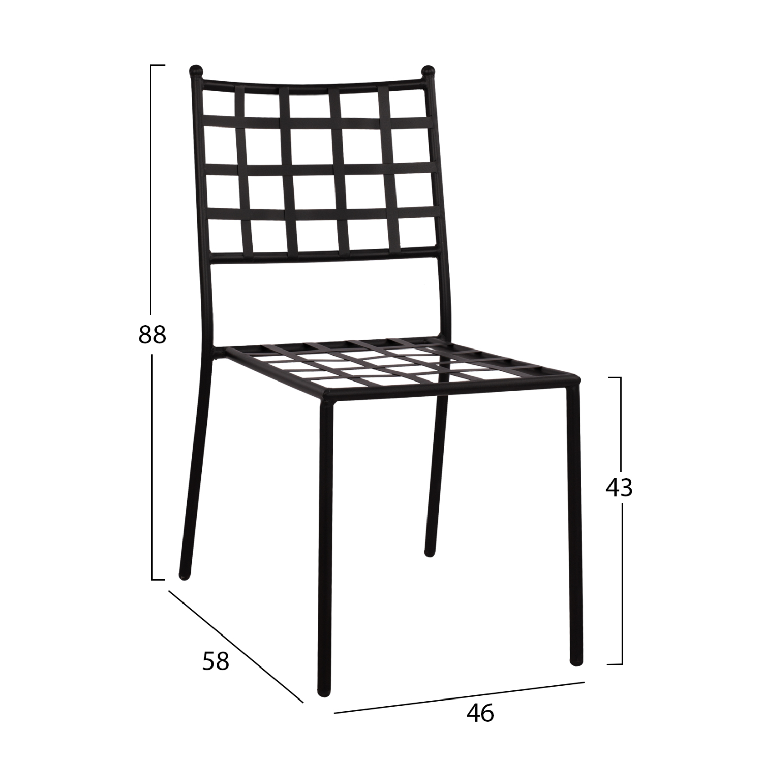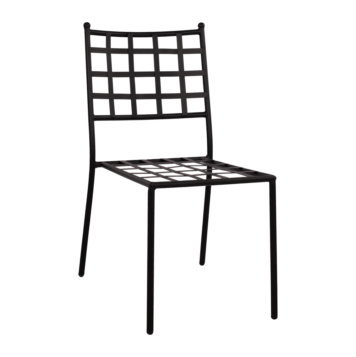 Στιβαρή και μεγάλης αντοχής μεταλλική καρέκλα σε μαύρη απόχρωση, ιδανική για εξωτερικούς χώρους.