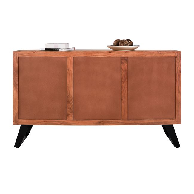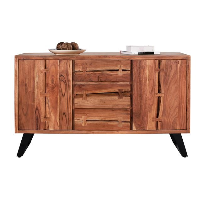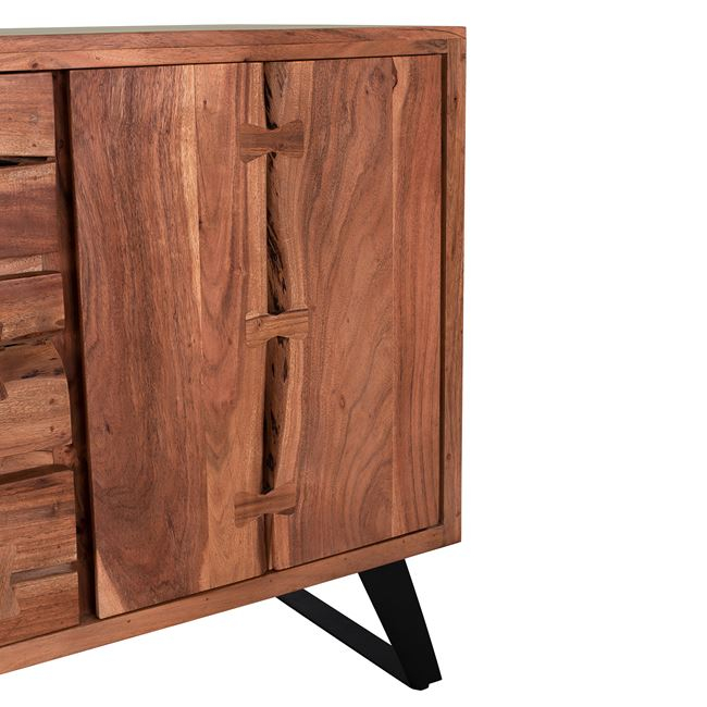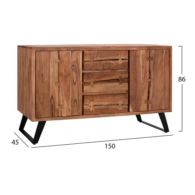 Μπουφές από μασίφ ξύλο Ακακίας σε φυσική απόχρωση και μεταλλικά πόδια σε μαύρο χρώμα.