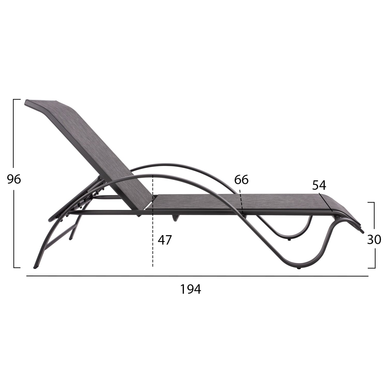 Επαγγελματική ξαπλώστρα από σκελετό αλουμινίου και textline σε γκρι απόχρωση.
