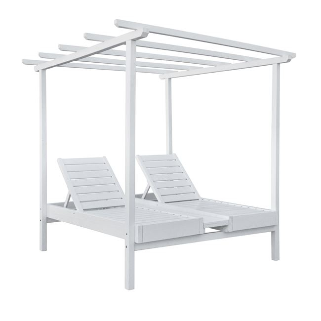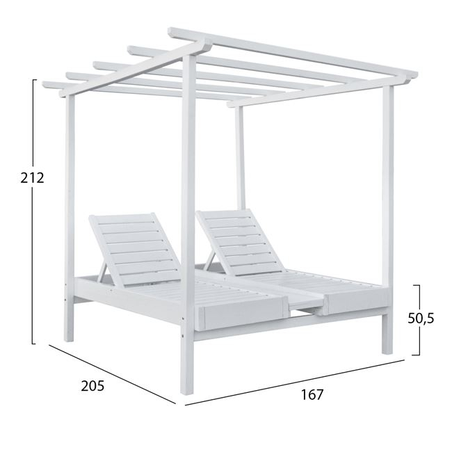 Ξαπλώστρα ΜΥΚΟΝΟΣ, από σουηδικό ξύλο, διπλή με ουρανό σε λευκή απόχρωση.