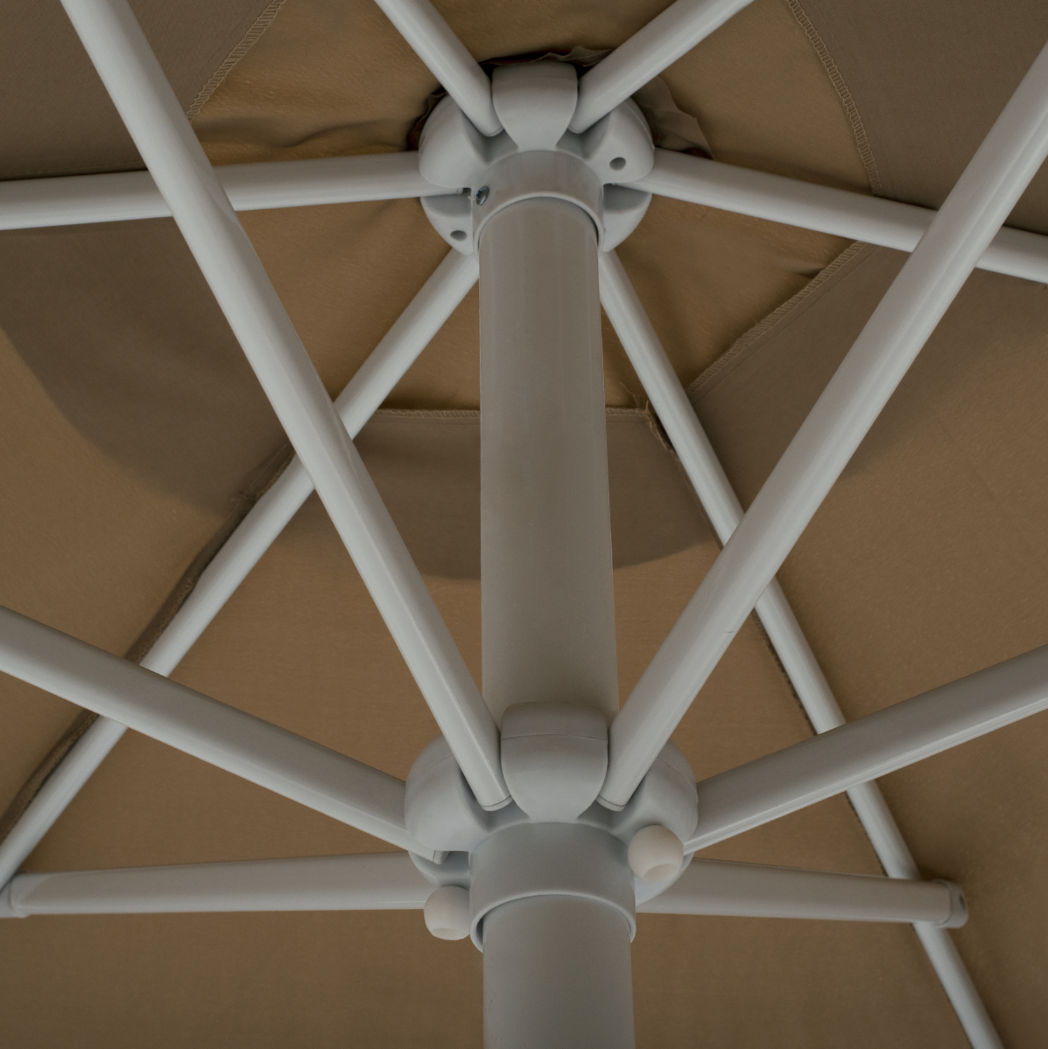 Ομπρέλα αλουμινίου διαιρούμενη με αναβατόριο, σε μόκα και λευκή απόχρωση.