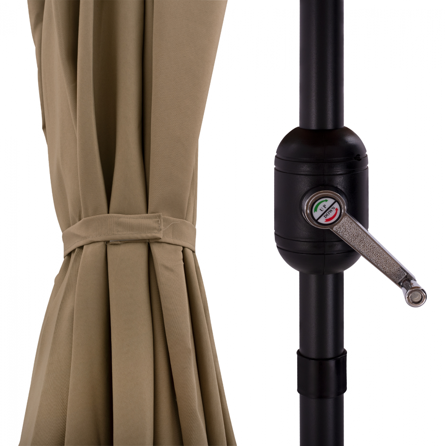 Ομπρέλα αλουμινίου διαιρούμενη με αναβατόριο, σε μόκα και γκρι απόχρωση.