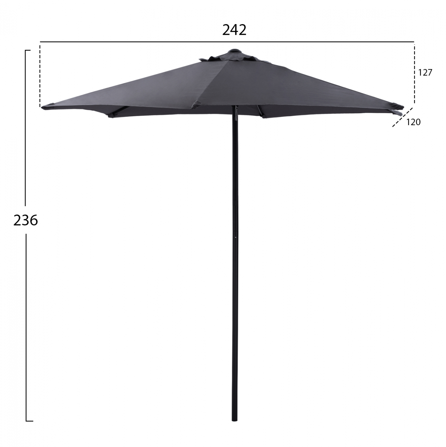 ΟΜΠΡΕΛΑ ΑΛΟΥΜΙΝΙΟΥ KACEN Φ250×236 εκ. ΜΕ 6 ΑΚΤΙΝΕΣ ΓΚΡΙ ΠΑΝΙ HM6030.10