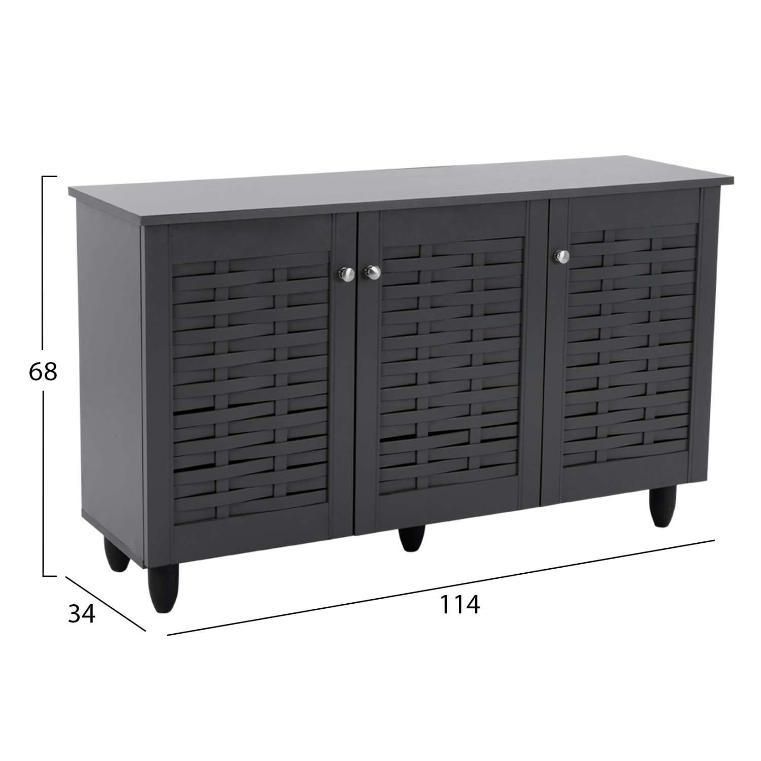 Παπουτσοθήκη-ντουλάπι από μελαμίνη άριστης ποιότητας, σε γκρι χρώμα με 3 πόρτες.
