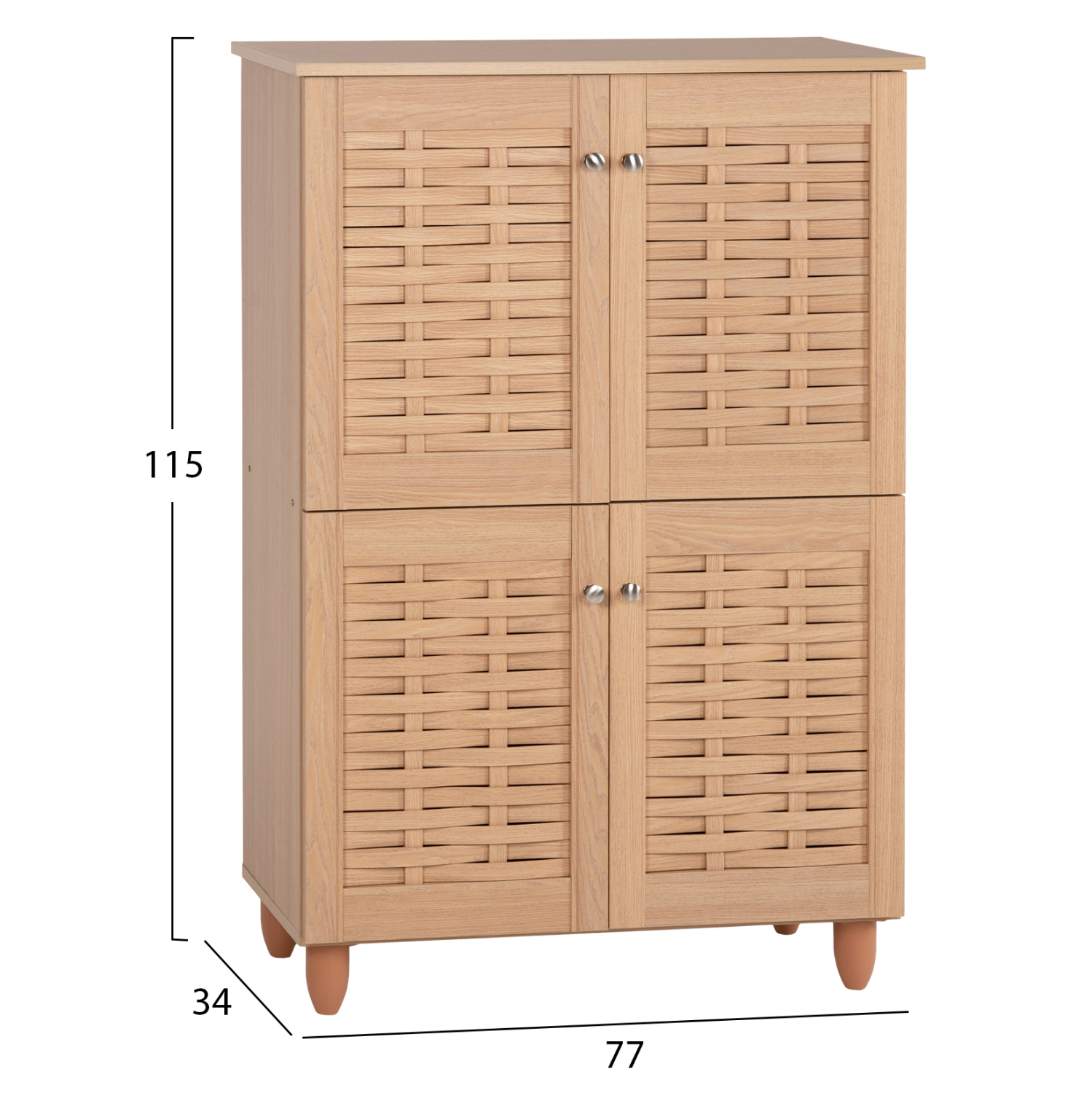 HM2210.09-Σας αρέσει να είστε τακτοποιημένοι και καθαροί;…καλό είναι αυτό, το ίδιο κι εμείς. Σας παρουσιάζουμε την παπουτσοθήκη-ντουλάπι «KABIRA” σε ΟΑΚ χρώμα με δύο επίπεδα και 4 πόρτες με μεταλλικά στρογγυλά χερούλια. Σκοπός μας είναι να σας βοηθήσουμε να οργανώσετε και να βελτιώσετε με τον καλύτερο δυνατό τρόπο την λειτουργικότητα του σπιτιού σας.