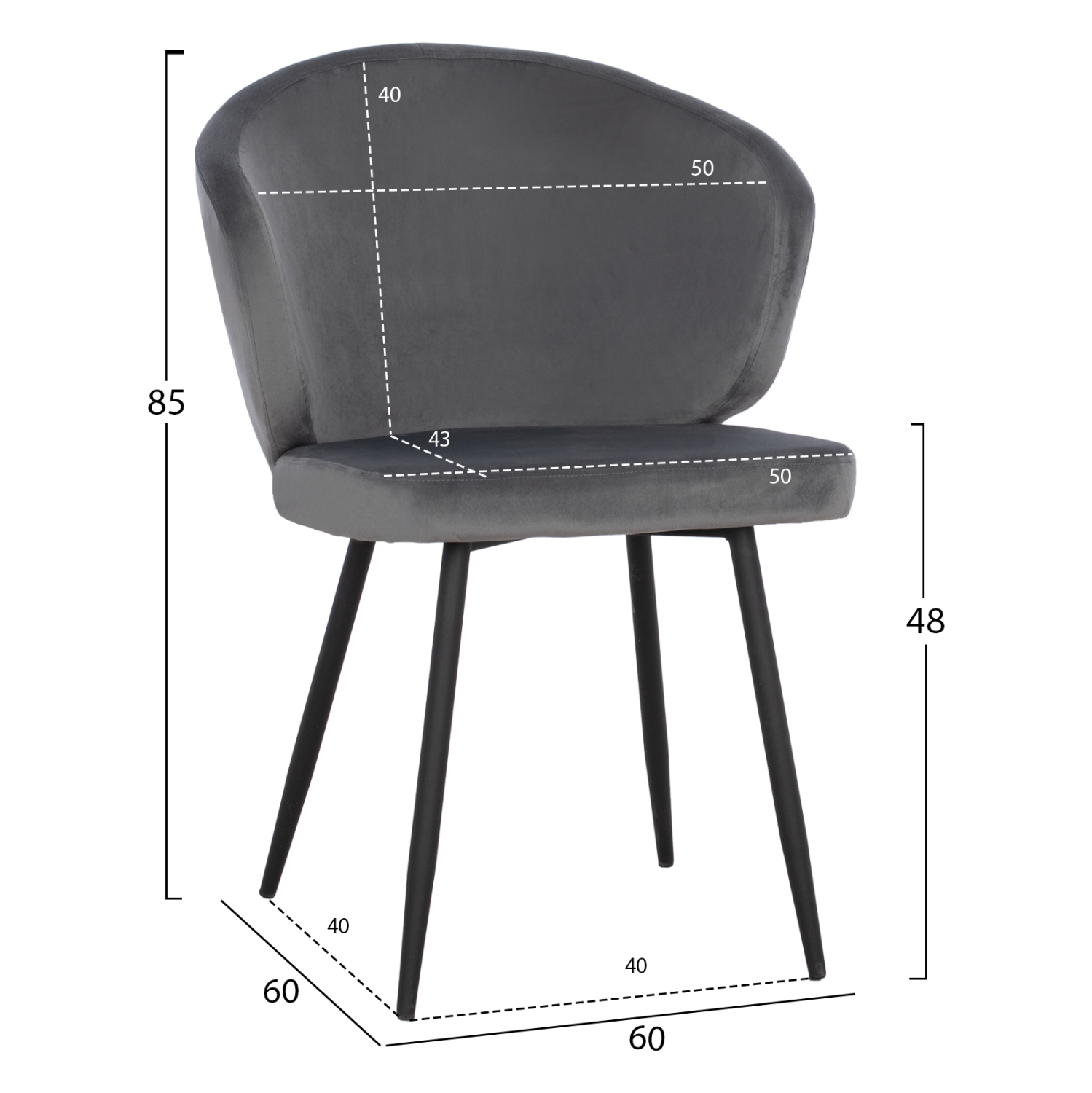 ΠΟΛΥΘΡΟΝΑΚΙ JIYA ΜΕ ΓΚΡΙ ΒΕΛΟΥΔΟ & ΜΑΥΡΟ ΜΕΤΑΛΛΙΚΟ ΣΚΕΛΕΤΟ HM8728.01 60x60x85 εκ.