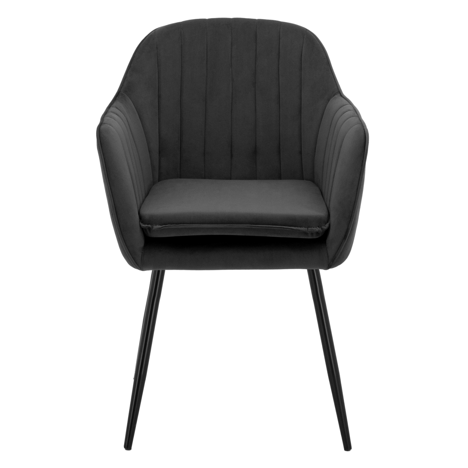 Η πολυθρόνα SAWYER είναι επενδυμένη με ύφασμα βελούδο σε γκρι απόχρωση και μεταλλικό σκελετό σε μαύρη απόχρωση.
