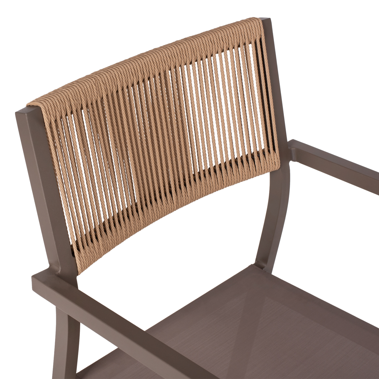 Η πλάτη της πολυθρόνας είναι επενδυμένη με πολυεστερικό RATTAN. Στα περισσότερα έπιπλα κήπου και γενικά σε έπιπλα για εξωτερικούς χώρους χρησιμοποιείται συνθετικό υλικό από PVC, δηλαδή τεχνητές ίνες υψηλής ποιότητας. Αυτό δίνει στην κατασκευή εξαιρετική αντοχή και ανθεκτικότητα σε ακραίες συνθήκες ζέστης ή κρύου.
