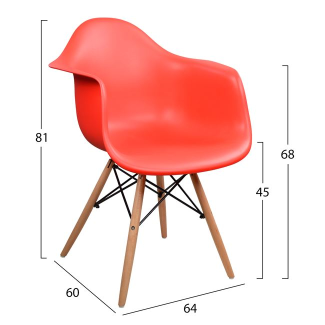 Πολυθρόνα από ματ polypropylene σε κόκκινο χρώμα. Ταιριάζει με όλα σχεδόν τα στιλ και είναι μια καρέκλα σταθμός στην ιστορία του design.