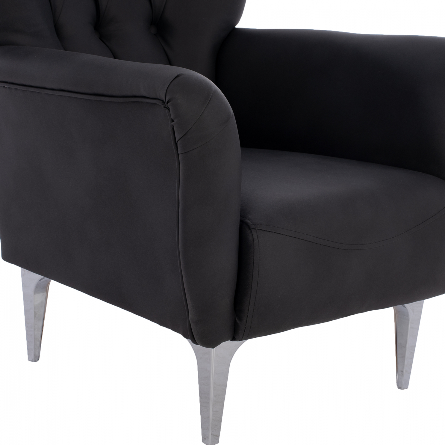Αυτή είναι η μπερζέρα ΗΜ9217.01 σε ΜΑΥΡΟ χρώμα και πόδια πολυπροπυλενίου σε ασημί χρώμα. Το χαρακτηριστικό που κάνει αυτή την πολυθρόνα να ξεχωρίζει είναι ότι η τεχνοτροπία της είναι σε στυλ Chesterfield, πράγμα που δίνει την αίσθηση κύρους και πολυτέλειας οπουδήποτε κι αν χρησιμοποιηθεί.