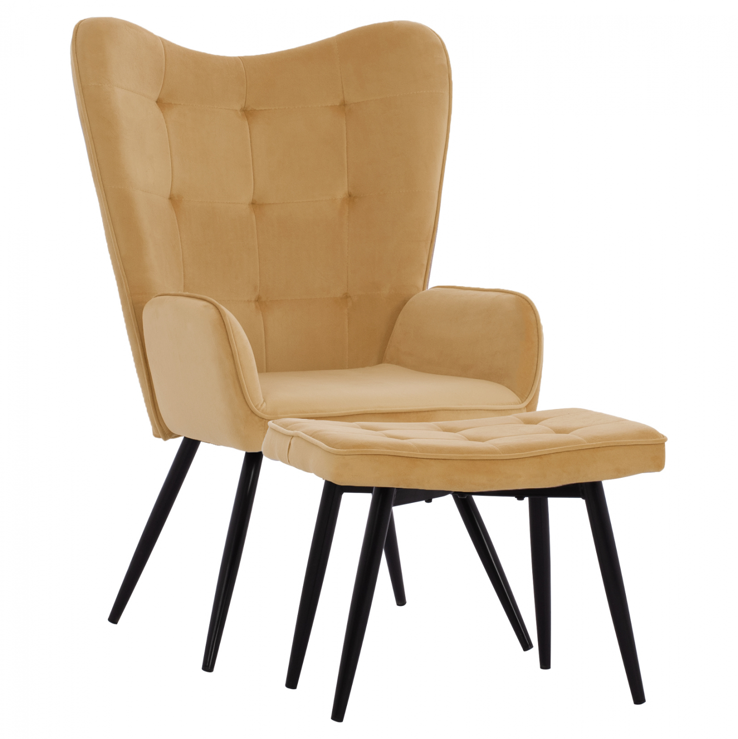 Σας παρουσιάζουμε την πολυθρόνα-μπερζέρα CRAWLEY, σε φωτεινό ΧΡΥΣΟ (ανοιχτό κίτρινο) χρώμα με μαύρα μεταλλικά πόδια. Η επένδυση της ψηλής πλάτης έχει γίνει με τεχνοτροπία καπιτονέ που προσδίδει ιδιαίτερη ομορφιά στην πολυθρόνα σε συνδυασμό, φυσικά, με το υψηλής ποιότητας βελούδινο ύφασμα. Το κάθισμα είναι αναπαυτικό ανταποκρινόμενο στον χαρακτήρα της πολυθρόνας, ενώ το χαρακτηριστικό αυτής της πολυθρόνας είναι ότι συνοδεύεται από ένα υποπόδιο ίδιας αισθητικής. Είναι μοντέρνα συνδυάζοντας στιλ και άνεση και μπορείτε να την τοποθετήσετε δίπλα στο τζάκι, σε ένα παράθυρο ή ακόμα και στο υπνοδωμάτιό σας, και να αφεθείτε στην «αγκαλιά» της, απλώνοντας τα πόδια σας στο εξαιρετικό υποπόδιο.