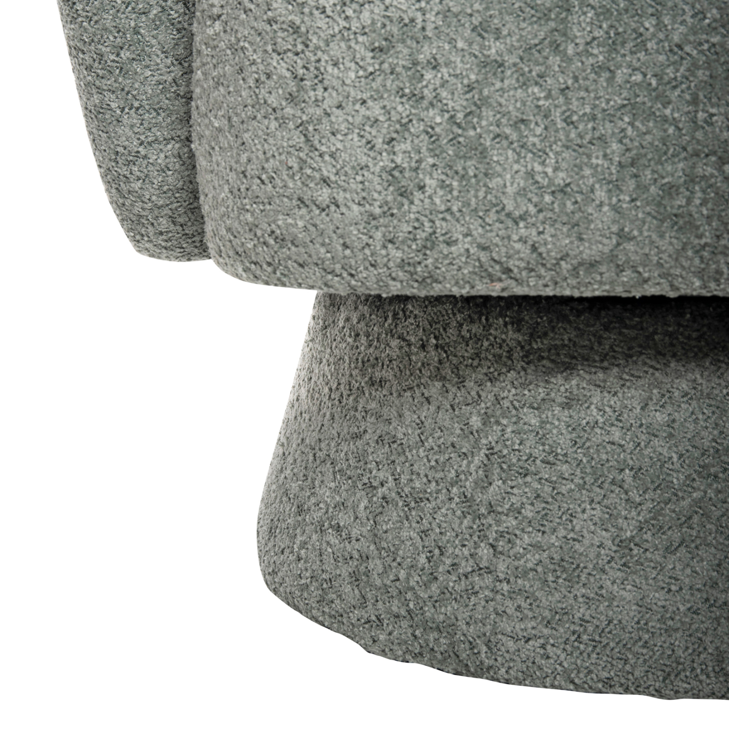 Η επένδυση της πολυθρόνας έχει γίνει εξολοκλήρου με εξαιρετικής ποιότητας ύφασμα ΜΠΟΥΚΛΕ. Μπουκλέ λέγεται οποιοδήποτε ύφασμα που έχει κόμπο-μπούκλα στην ύφανσή του . Κατασκευάζεται από σχεδόν όλες τις πρώτες ύλες (αν και συνήθως είναι συνθετικό) με ειδικές κλωστές με κόμπους ή πολύ στριμμένα νήματα, έτσι ώστε να έχει σγουρή επιφάνεια. Δεν τσαλακώνει και μπορεί να είναι μονόχρωμο, μελανζέ ,καρώ ή τουιντ.