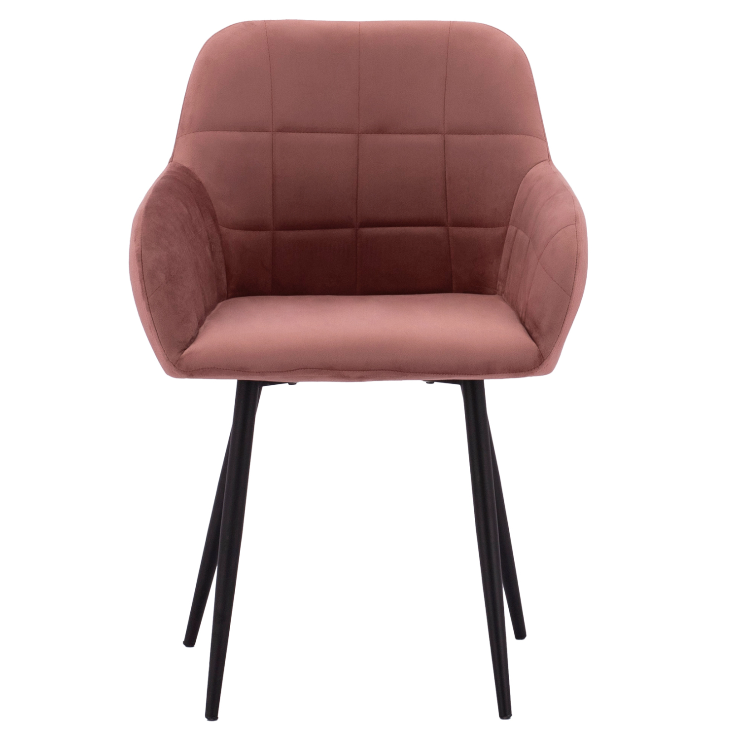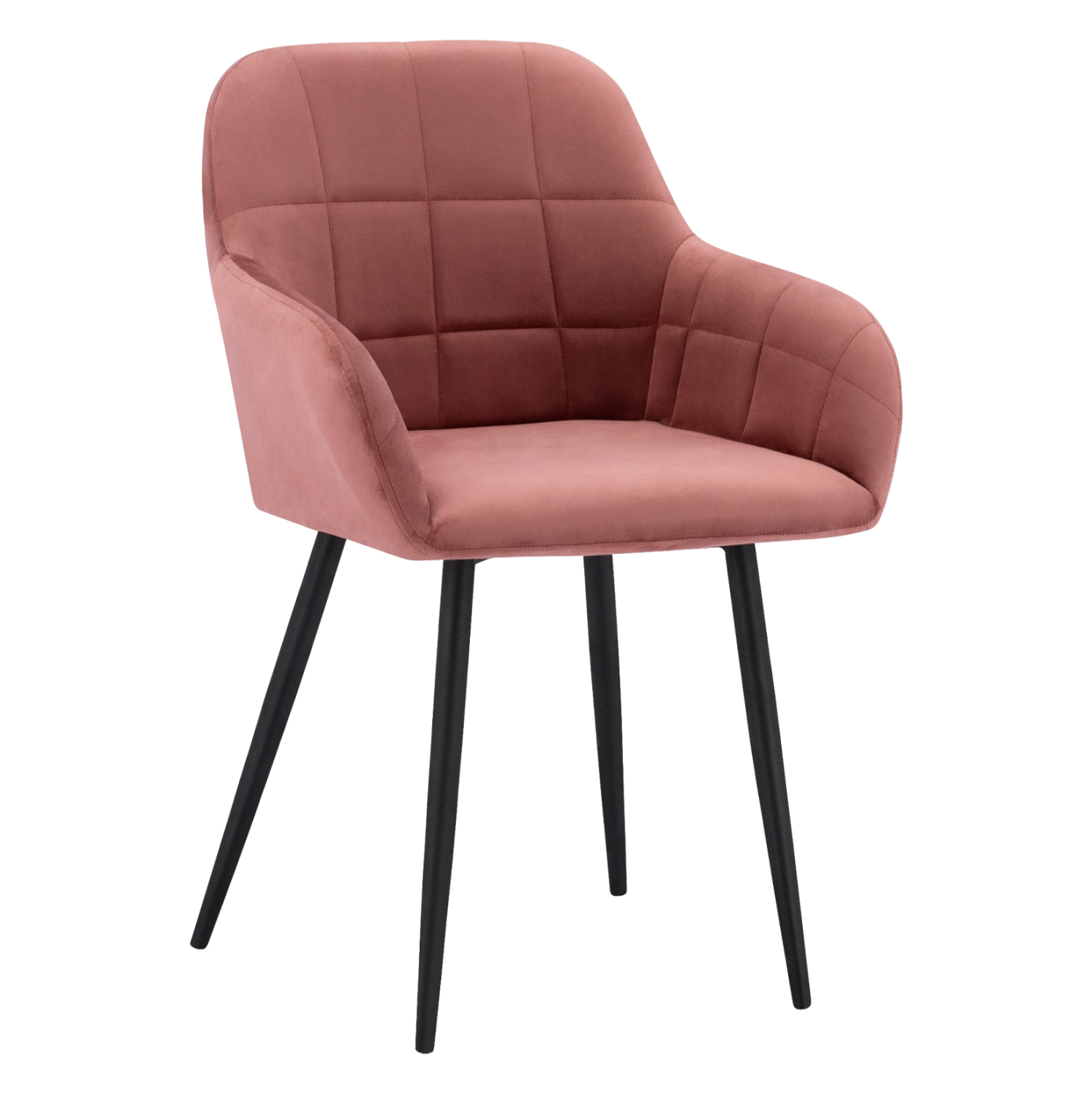 Πολυθρόνα Chloe επενδυμένη με ύφασμα βελούδο σε απόχρωση σάπιου μήλου και μεταλλικά πόδια σε μαύρη απόχρωση.