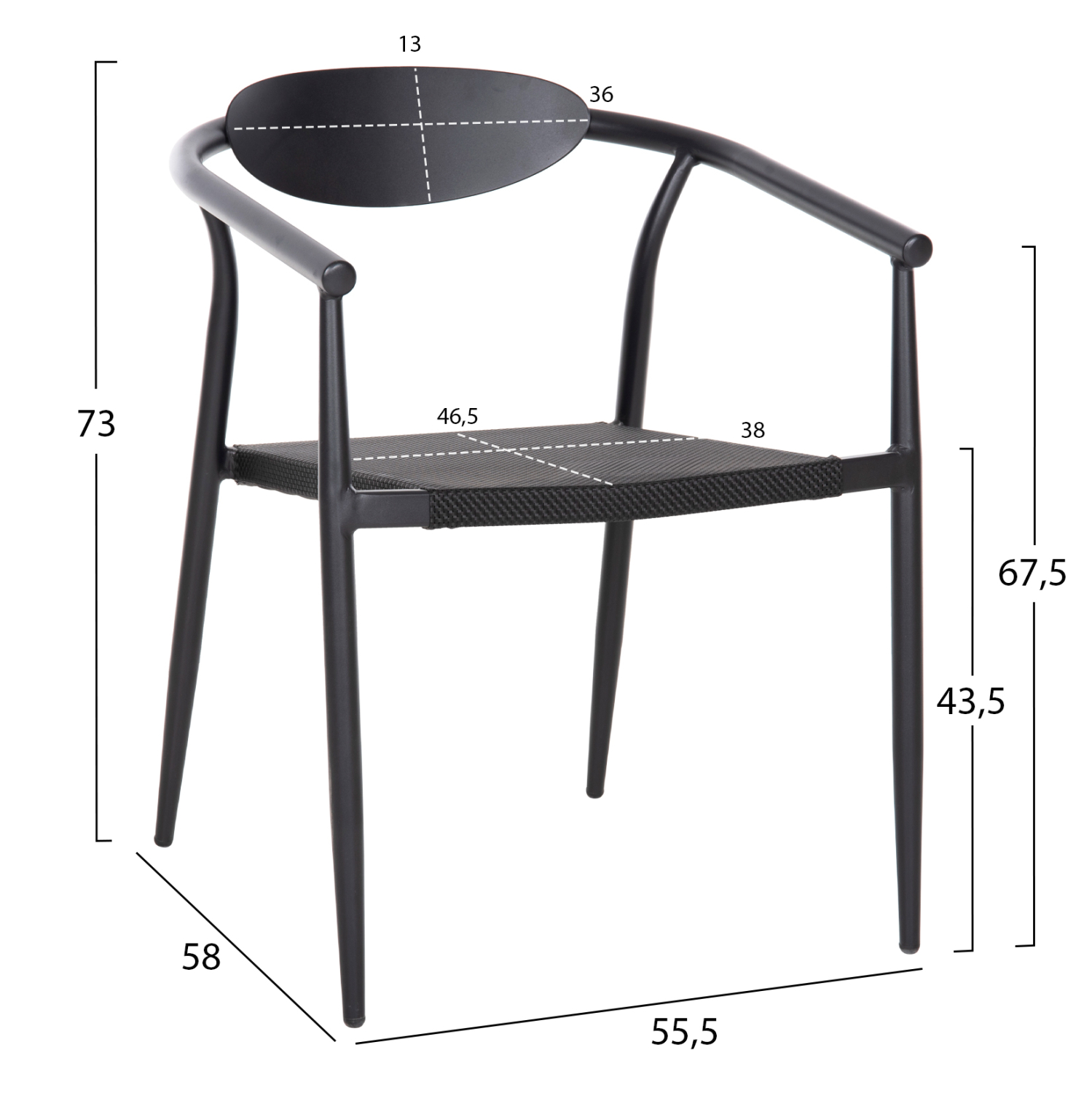 Η πολυθρόνα αλουμινίου SERLY σε ΜΑΥΡΟ χρώμα είναι τόσο για επαγγελματική χρήση όσο και για το σπίτι. Έχει απλό σχεδιασμό με εντελώς μινιμαλιστική πλάτη και ψηλά μπράτσα που αγκαλιάζουν το σώμα. Το κάθισμα αποτελείται από ΜΑΥΡΟ ύφασμα textilene, ολοκληρώνοντας αυτή την απλή αλλά όμορφη πολυθρόνα εξωτερικού χώρου.