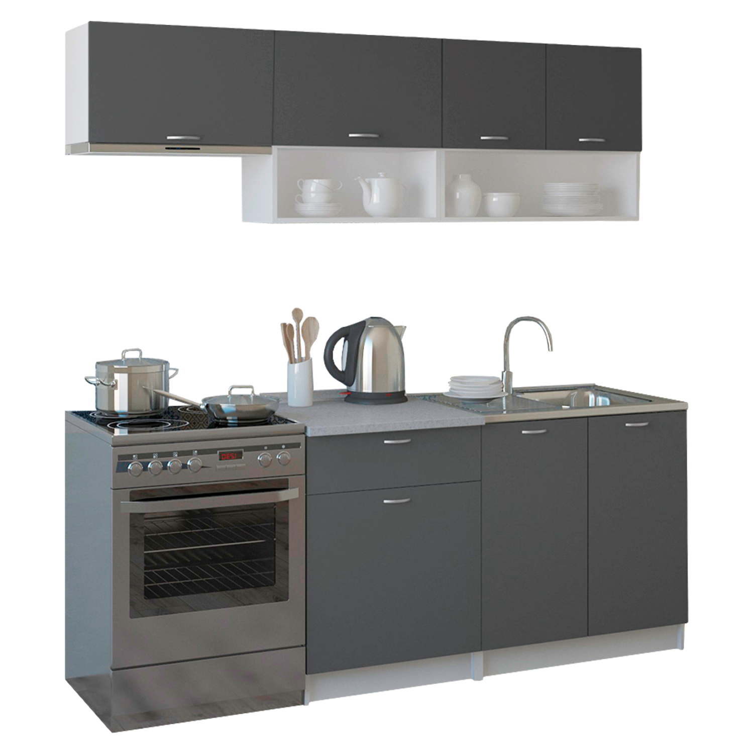 Σύνθεση Κουζίνας, σε απόχρωση γκρι – λευκό 200×46-29,2εκ.