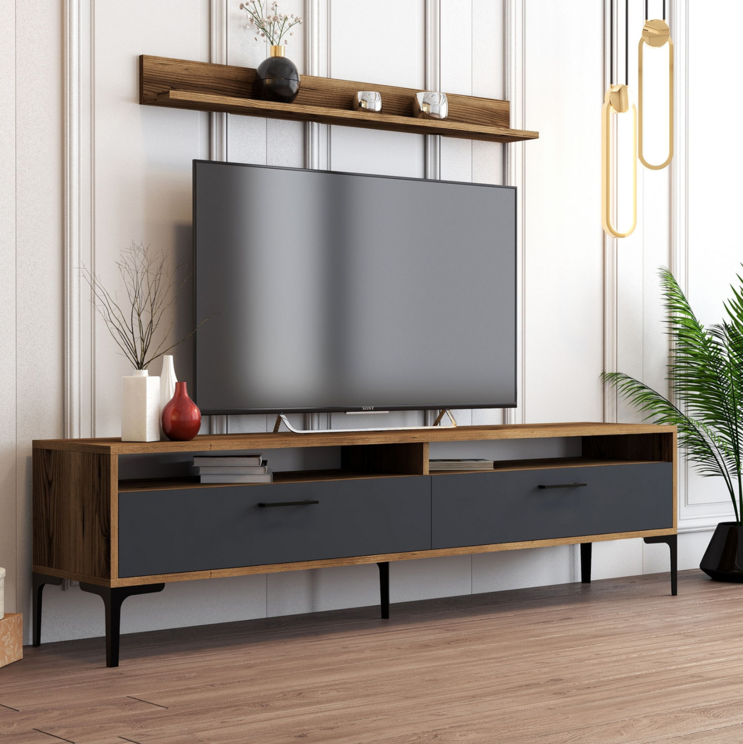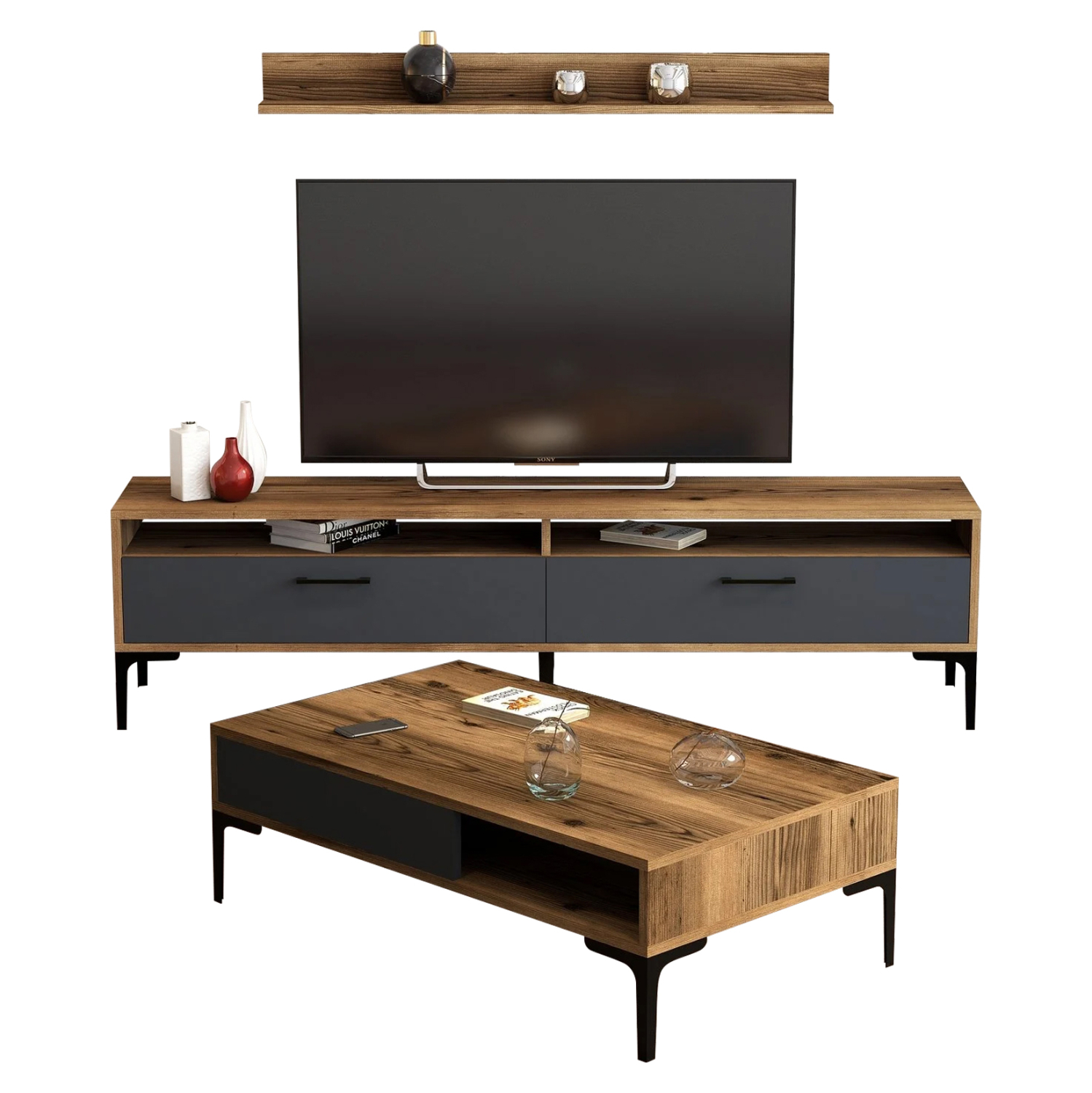 Η σύνθεση ΗΜ11856.02 θα αλλάξει την όψη στο σαλόνι σας και θα σας προσφέρει την αναβάθμιση που θέλετε. Αποτελείται από έναν συνδυασμό επίπλων για την τηλεόρασή σας με μονάδα δαπέδου και επιτοίχιo ράφι και ένα τραπεζάκι σαλονιού. Όλη η σύνθεση είναι της ίδιας σειράς και τα κυρίαρχα χρώματα είναι το ΚΑΡΥΔΙ και το ΑΝΘΡΑΚΙ.