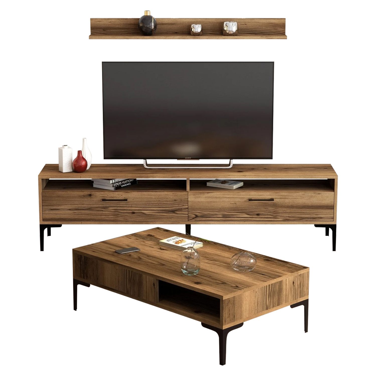 Η σύνθεση ΗΜ11856.01 θα αλλάξει την όψη στο σαλόνι σας και θα σας προσφέρει την αναβάθμιση που θέλετε. Αποτελείται από έναν συνδυασμό επίπλων για την τηλεόρασή σας με μονάδα δαπέδου και επιτοίχιo ράφι και ένα τραπεζάκι σαλονιού. Όλη η σύνθεση είναι της ίδιας σειράς σε ΚΑΡΥΔΙ χρώμα.