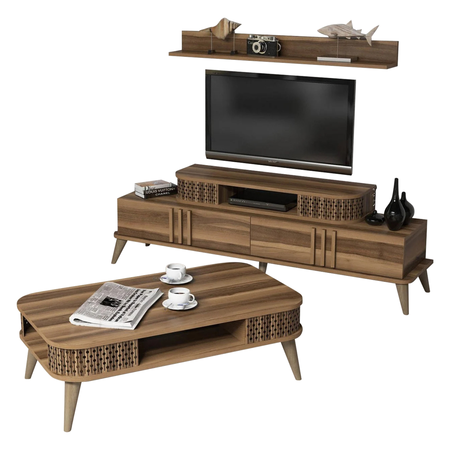 Η σύνθεση ΗΜ11848.02 θα αλλάξει την όψη στο σαλόνι σας και θα σας προσφέρει την αναβάθμιση που θέλετε. Αποτελείται από έναν συνδυασμό επίπλων για την τηλεόρασή σας με μονάδα δαπέδου και επιτοίχιο ράφι και ένα τραπεζάκι σαλονιού. Όλη η σύνθεση είναι της ίδιας σειράς και το κυρίαρχο χρώμα είναι το ΚΑΡΥΔΙ.