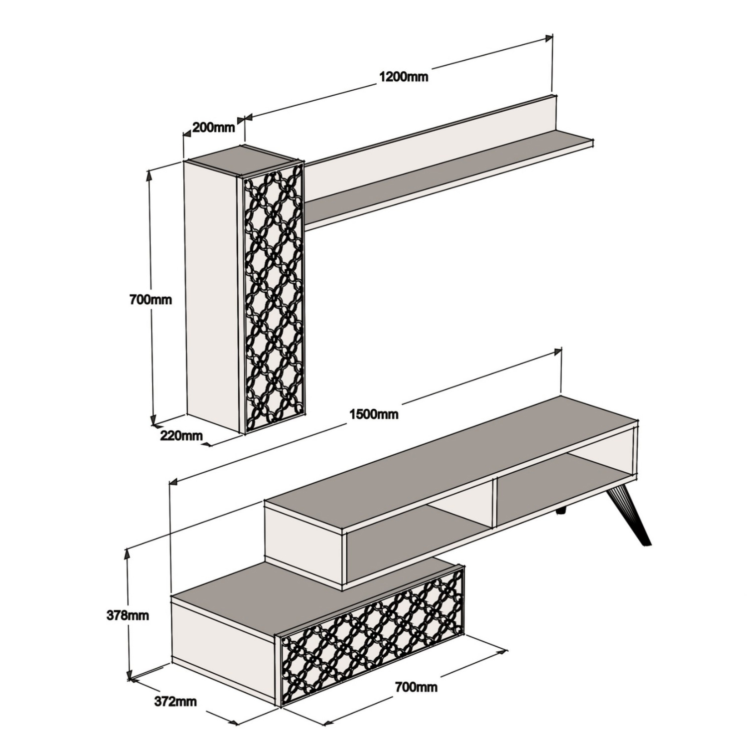 Αυτή η σύνθεση είναι όμορφη και φυσικά πρακτική. Το κυρίως έπιπλο έχει την δυνατότητα να στερεωθεί στον τοίχο για ακόμα μεγαλύτερη σταθερότητα. Κατασκευασμένη με ποιοτικά υλικά που την κάνουν εύκολη στην συντήρηση, αποτελεί μια ιδανική πρόταση για το σπίτι με τιμή που δεν θα σας αφήσει να κοιτάξετε αλλού!
