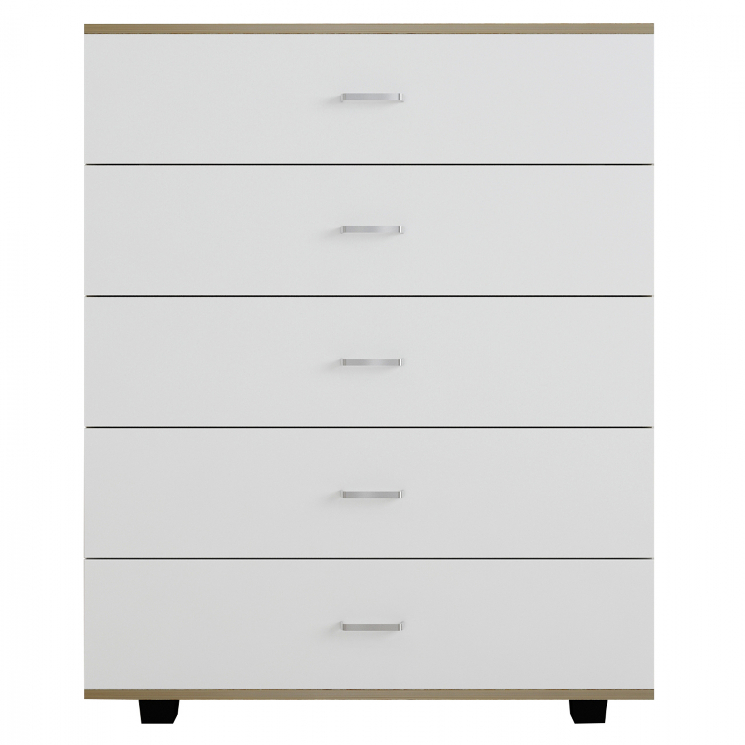 Η THORG είναι μια μεγάλη συρταριέρα με 5 φαρδιά συρτάρια που θα ικανοποιήσει όλες τις ανάγκες σας. Έχει χρώμα SONAMA με ΛΕΥΚΑ συρτάρια και χερούλια σε ασημί απόχρωση. Τα μαύρα ποδαράκια της συρταριέρας, είναι σταθερά και φαρδιά προσφέροντας στιβαρότητα στην κατασκευή και ταυτόχρονα δημιουργούν μια ευχάριστη διχρωμία με το κυρίως σώμα της συρταριέρας.