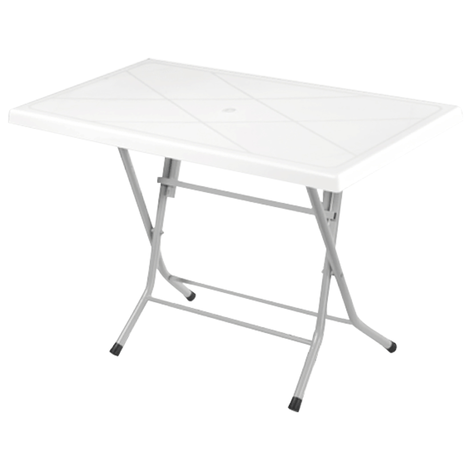 Το Hm5853 είναι ένα τραπέζι με ορθογώνια επιφάνεια πολυπροπυλενίου σε κλασικό λευκό χρώμα και απαλό κυψελωτό σχέδιο, με πτυσσόμενη μεταλλική βάση σε γκρι χρώμα.