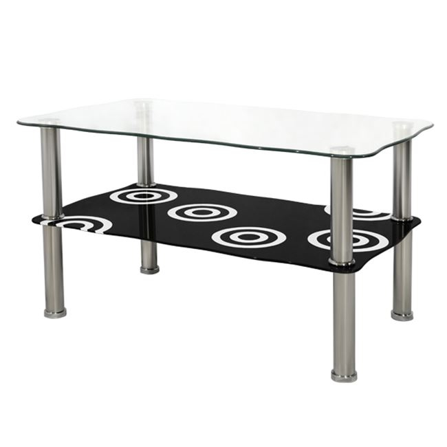 ΗΜ0087 ΤΡΑΠΕΖΙ ΣΑΛΟΝΙΟΥ—–Ανακαλύψτε το μοντέρνο τραπεζάκι σαλονιού GRABES. Διαθέτει 2 γυάλινες επιφάνειες και μεταλλικά χρωμιωμένα πόδια. Η επάνω επιφάνεια είναι διάφανη, ενώ η κάτω επιφάνεια είναι μαύρη με όμορφα κυκλικά σχέδια. Το γυαλί σε συνδυασμό με τα χρωμιωμένα πόδια προσδίδουν την αίσθηση της καθαρότητας και της απλότητας στον χώρο.