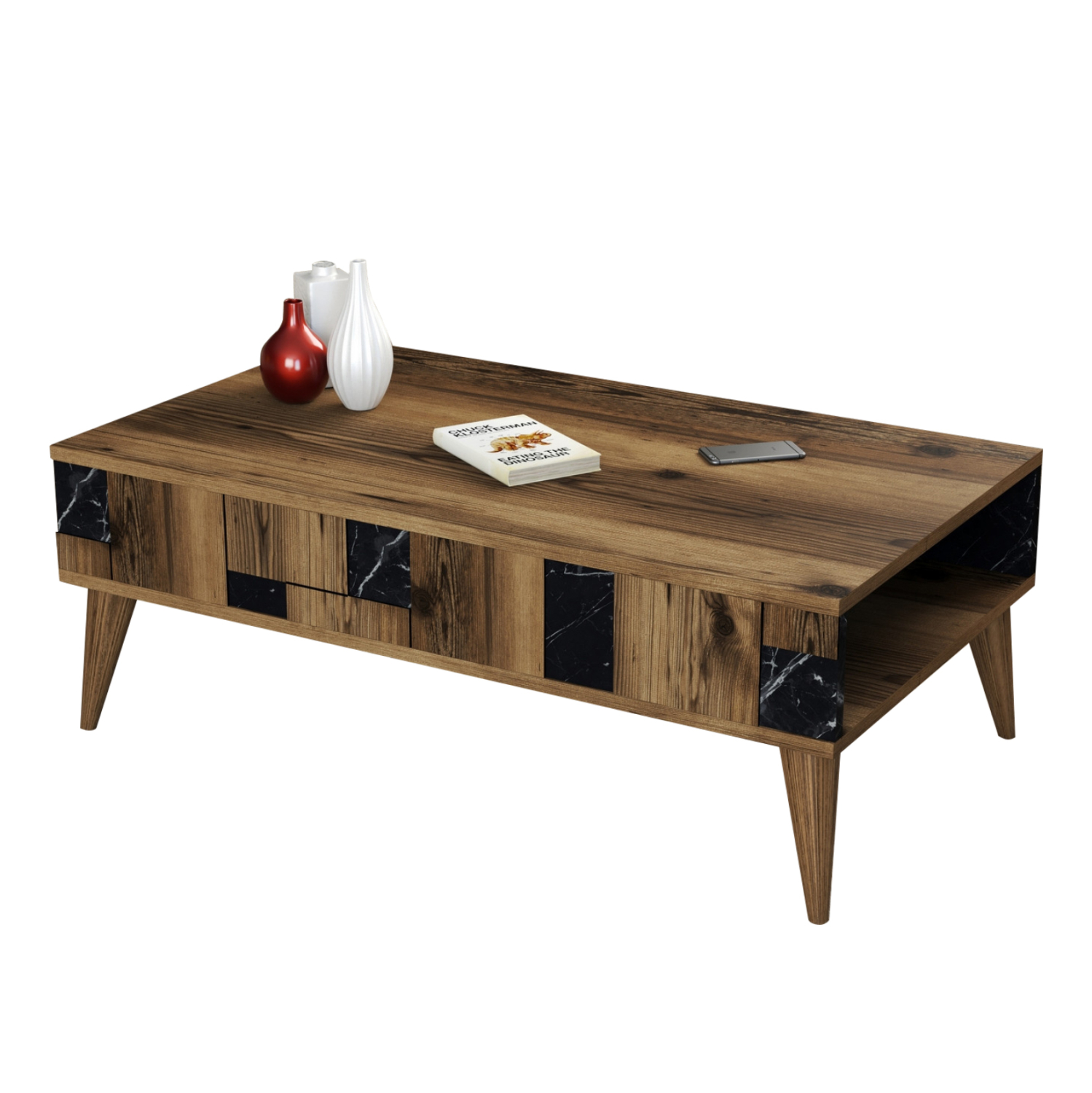 ΤΡΑΠΕΖΙ ΣΑΛΟΝΙΟΥ HM9504.02 ΜΕΛΑΜΙΝΗΣ ΚΑΡΥΔΙ-ΜΑΥΡΟ ΜΑΡΜΑΡΟ 105x60x37.6Υεκ.