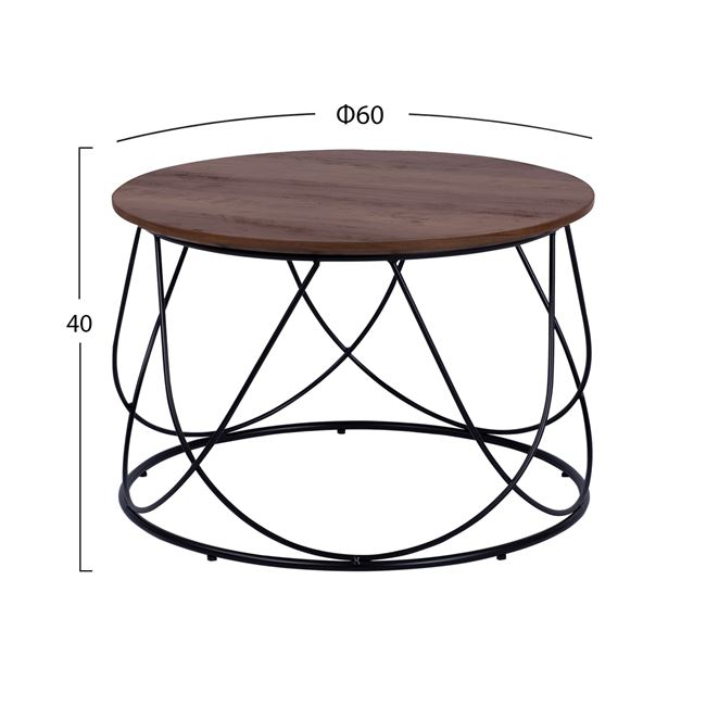 Τραπεζάκι σαλονιού σε καρυδί απόχρωση, με διάμετρο επιφάνειας Φ60.