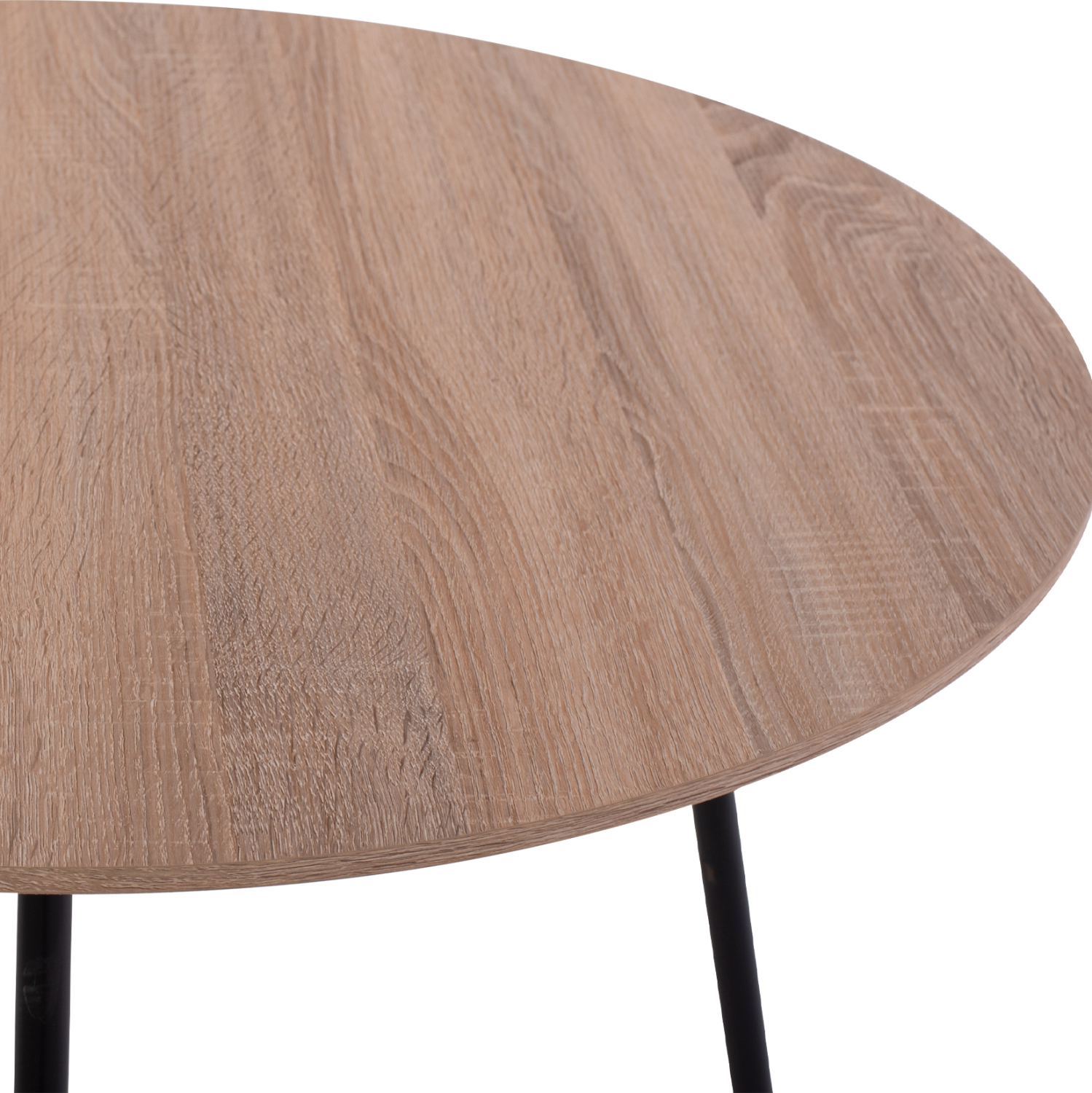 Το ΗΜ8743.01 είναι ένα στρογγυλό τραπέζι για τραπεζαρία, με επιφάνεια από MDF σε χρώμα SONOMA. Τα 4 πόδια είναι μεταλλικά σε μαύρο χρώμα και ενώνονται μεταξύ τους ψηλά. Πρόκειται για ένα απλό τραπέζι σε σχετικά μικρή διάσταση, αλλά με ιδιαίτερα καλαίσθητο χρωματισμό, με αποτέλεσμα να μπορεί να ταιριάξει αισθητικά σχεδόν σε κάθε ανάλογο χώρο.