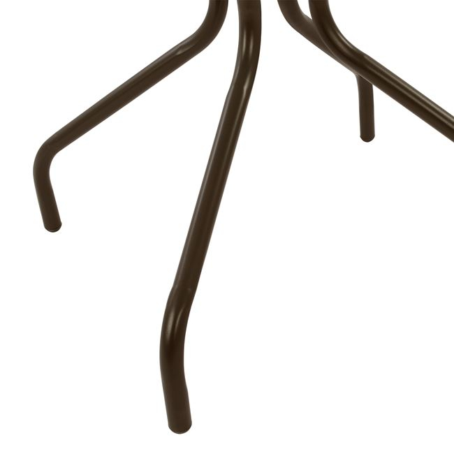 Τραπέζι εξωτερικού χώρου μεταλλικό σε καφέ απόχρωση με γυαλί ασφαλείας στην επιφάνειά του.